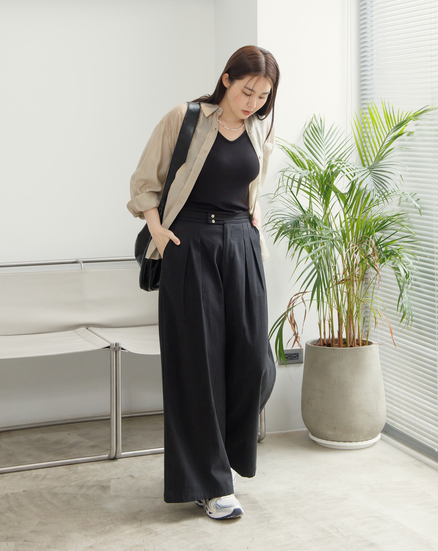 修身打褶隨性西裝寬褲