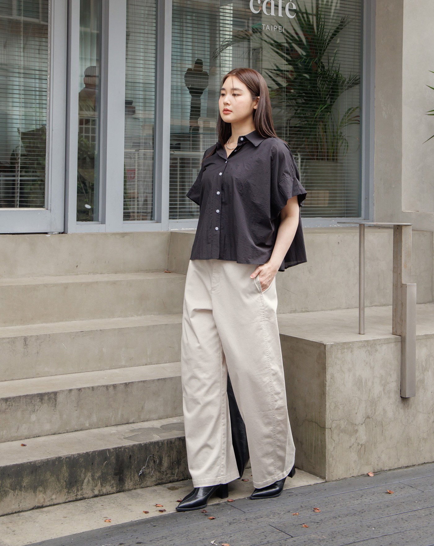 多WAY鈕扣抓摺百搭長袖襯衫