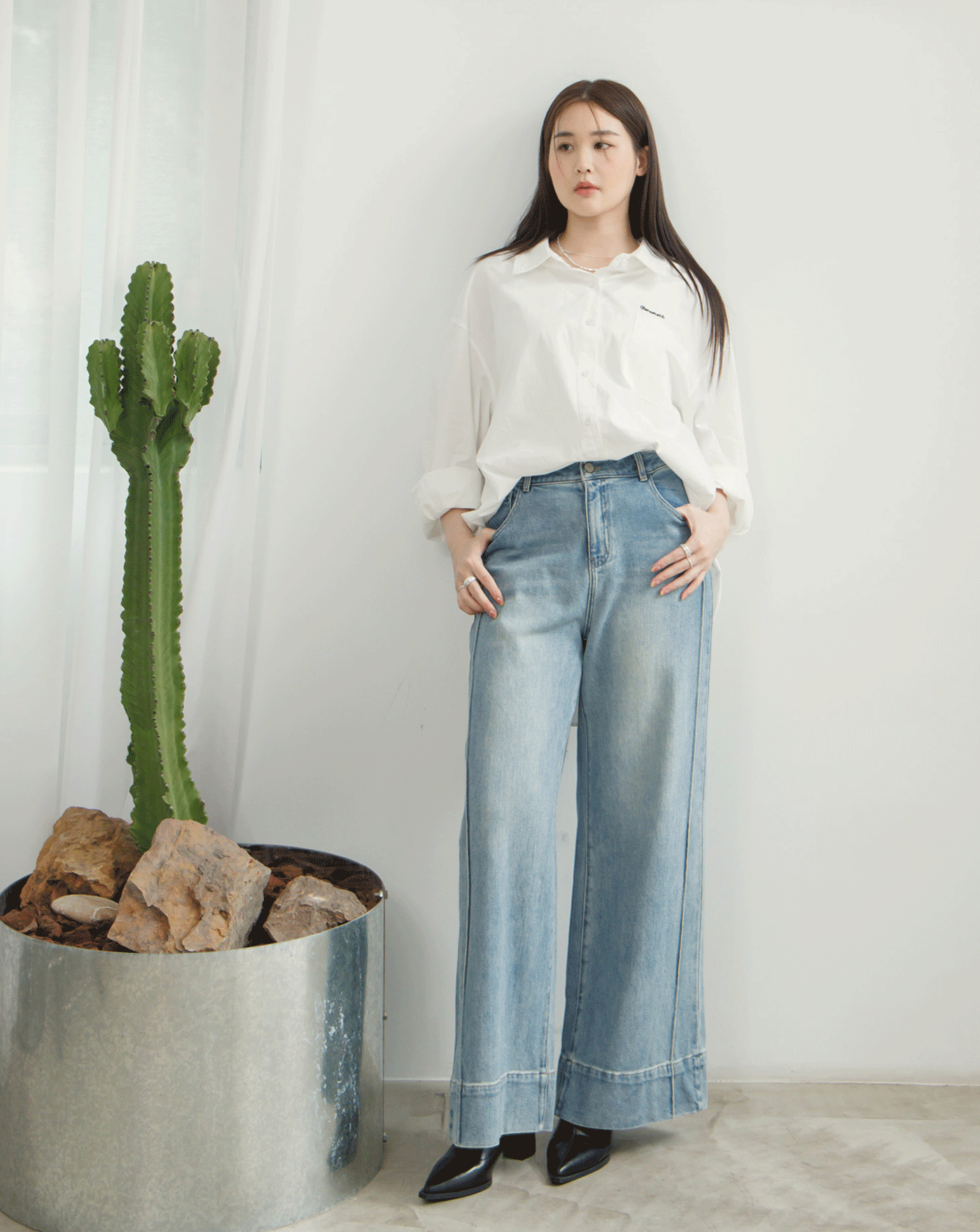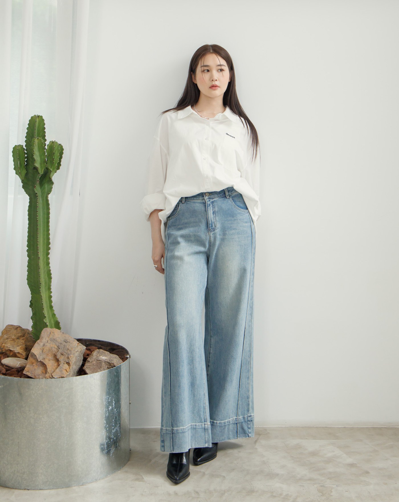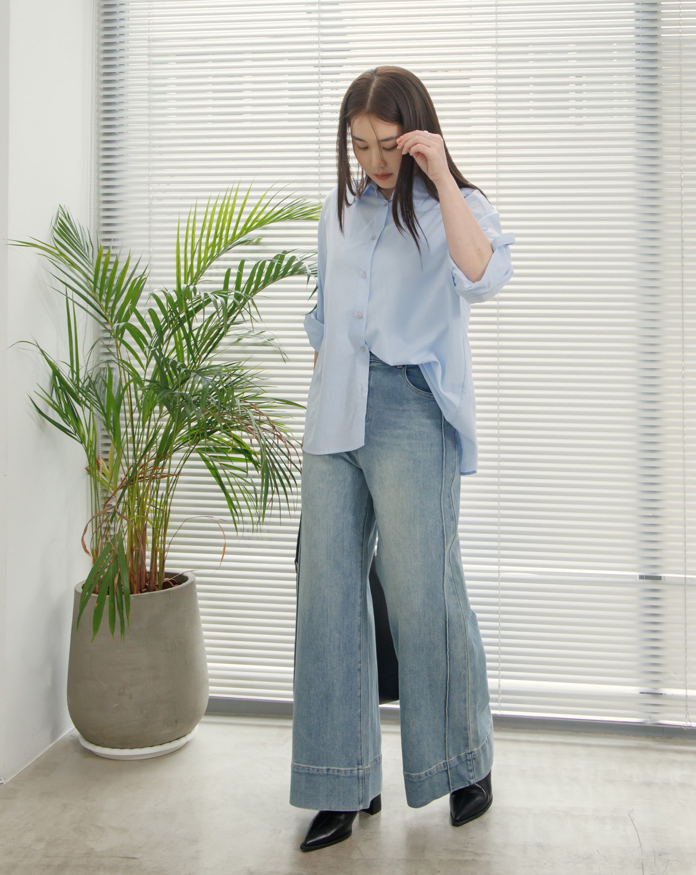 isn'tblue挺版圓弧下擺寬鬆襯衫