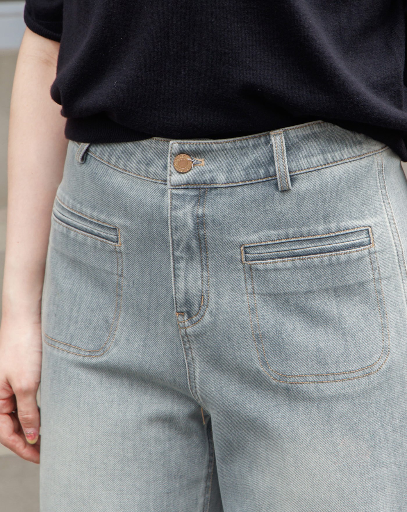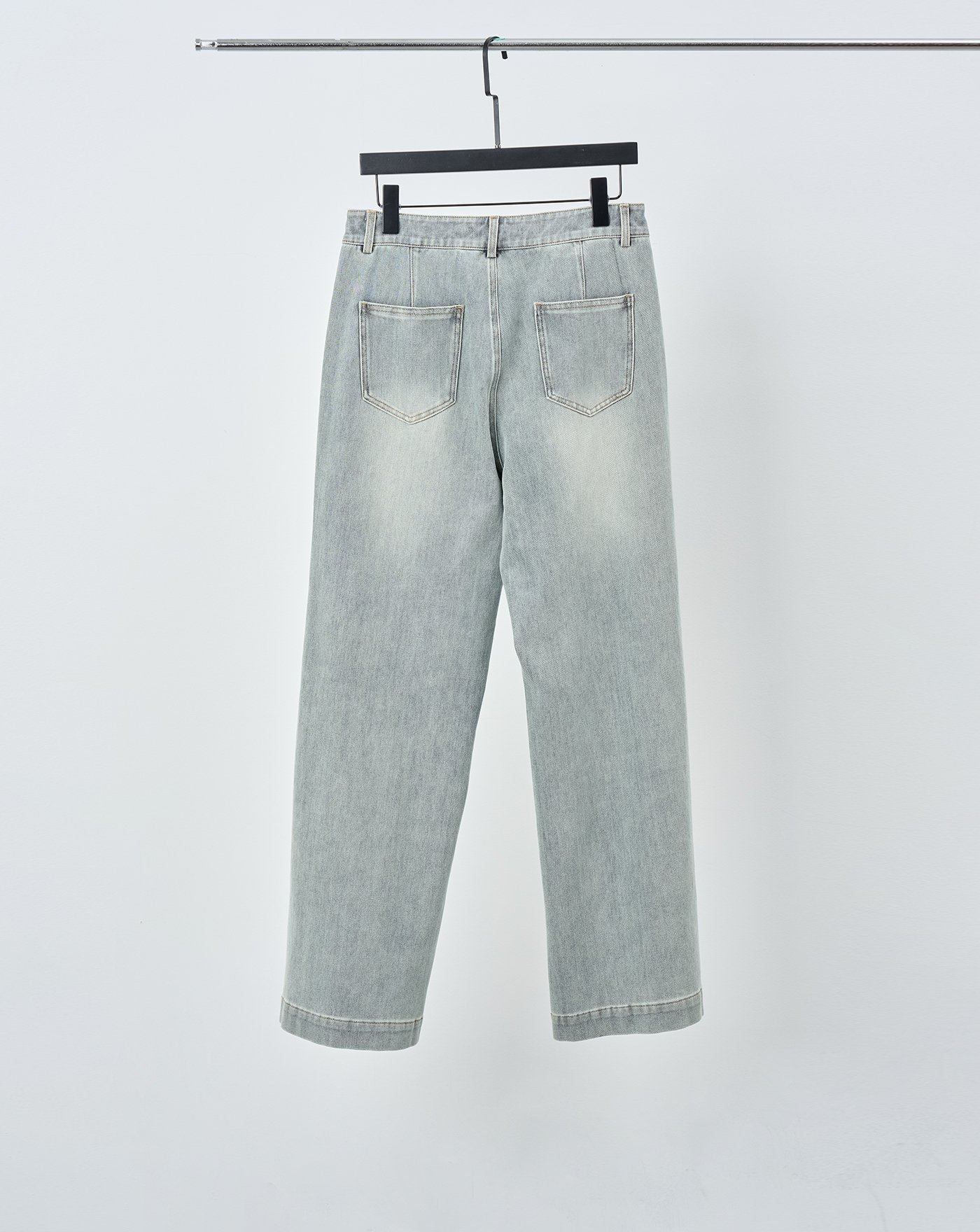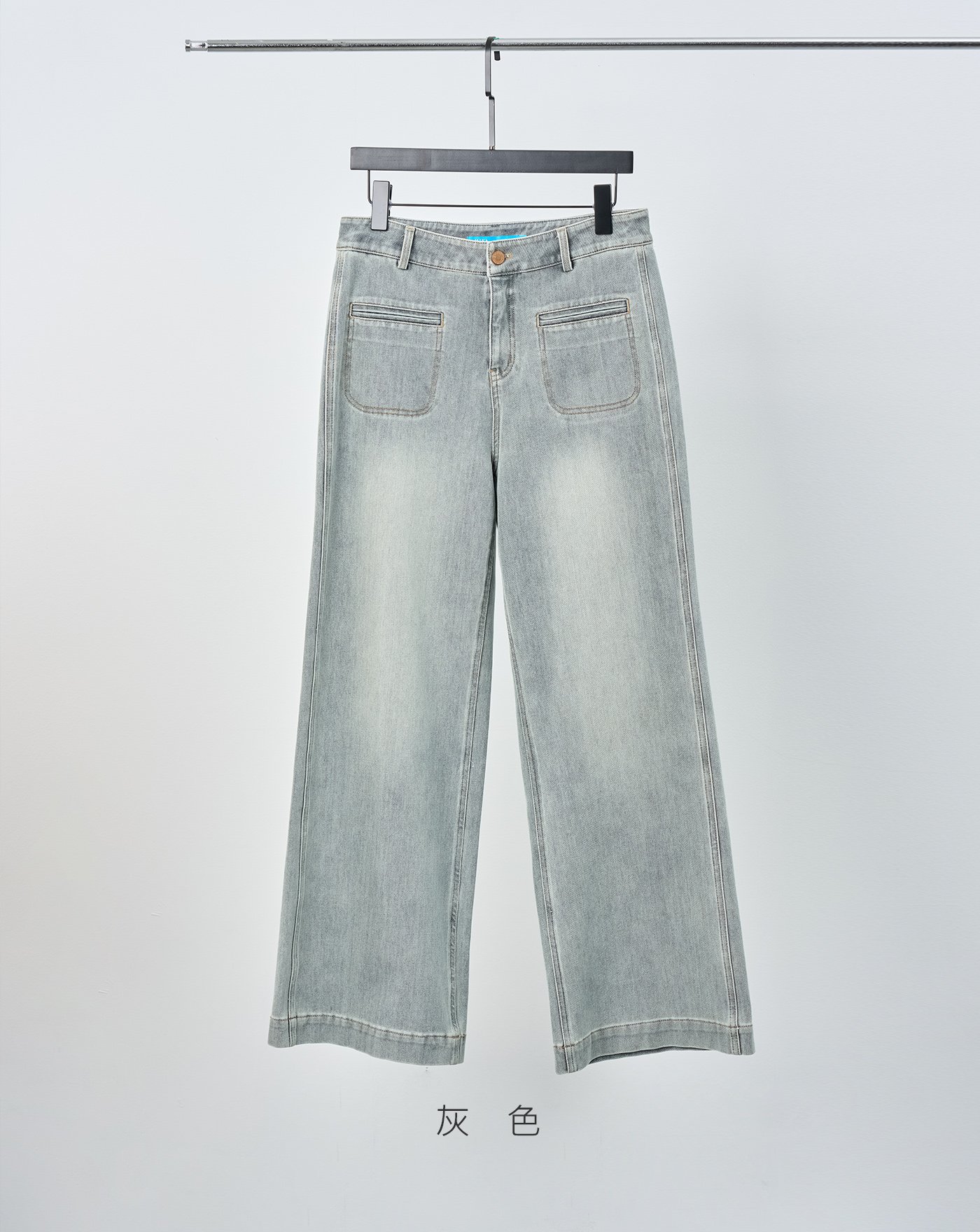 - 長腿顯瘦雙口袋造型直筒牛仔褲:灰色-L x 1