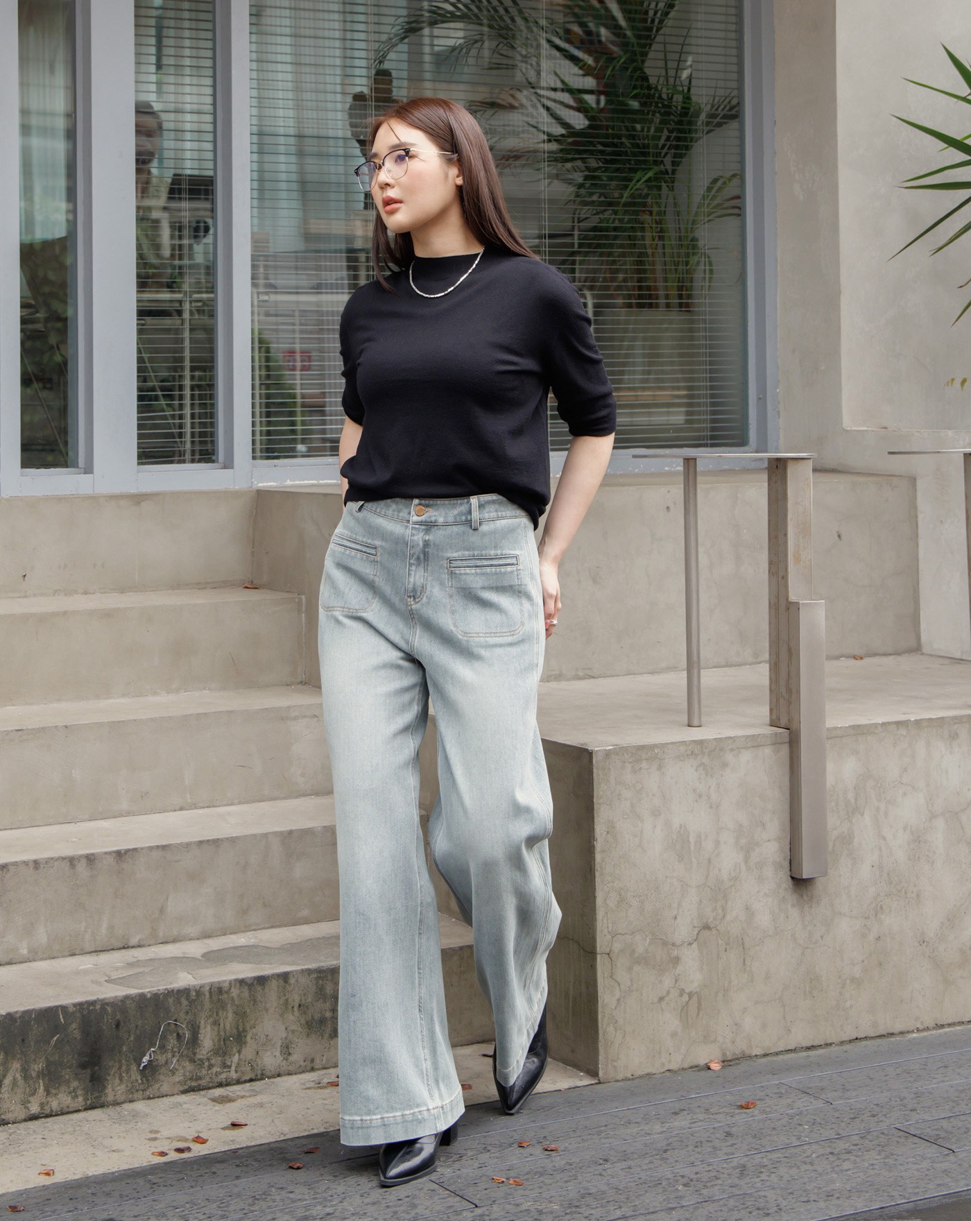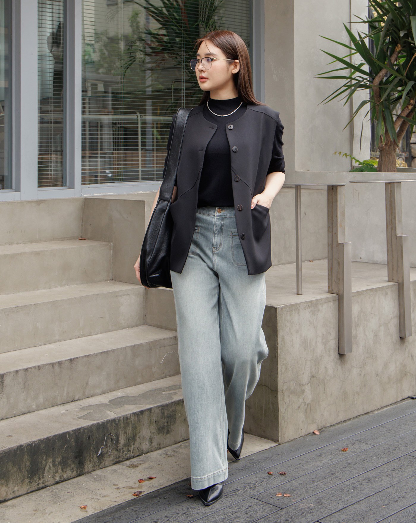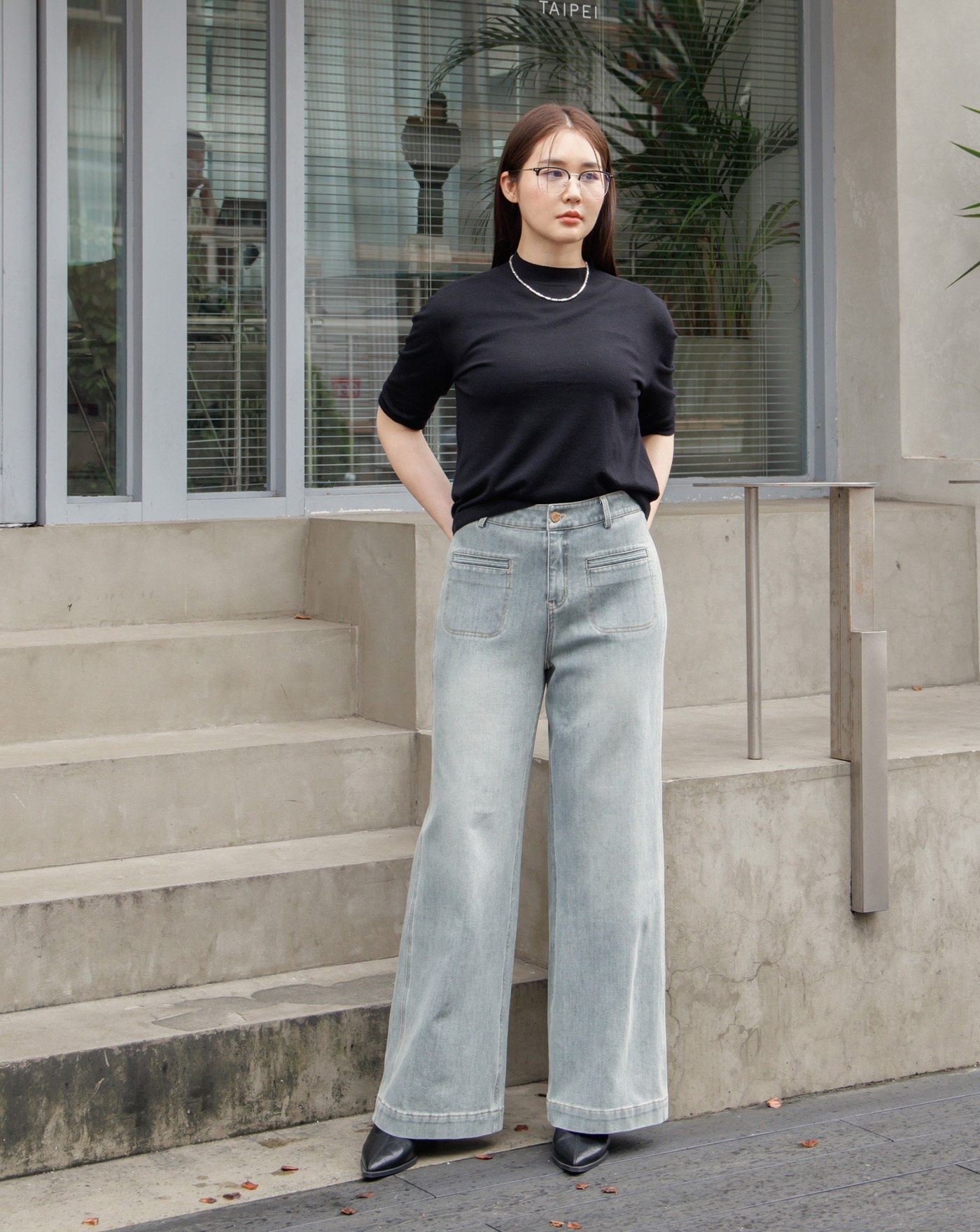 - 長腿顯瘦雙口袋造型直筒牛仔褲:灰色-L x 1