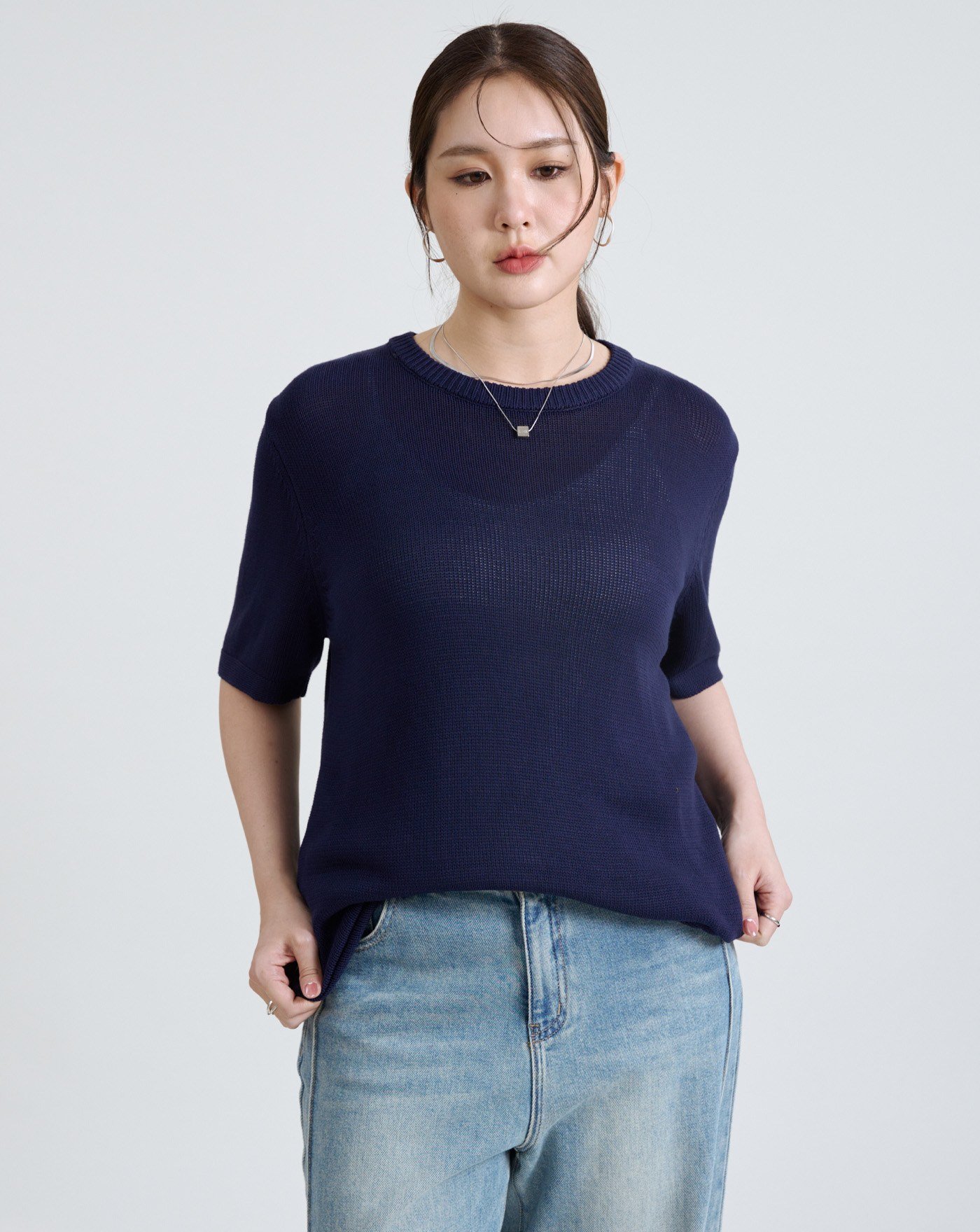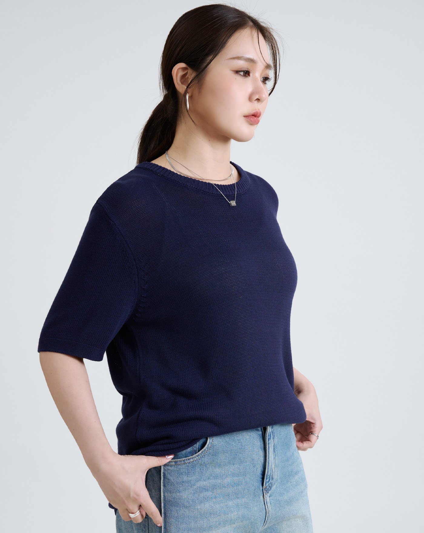 微立領合身五分袖針織上衣