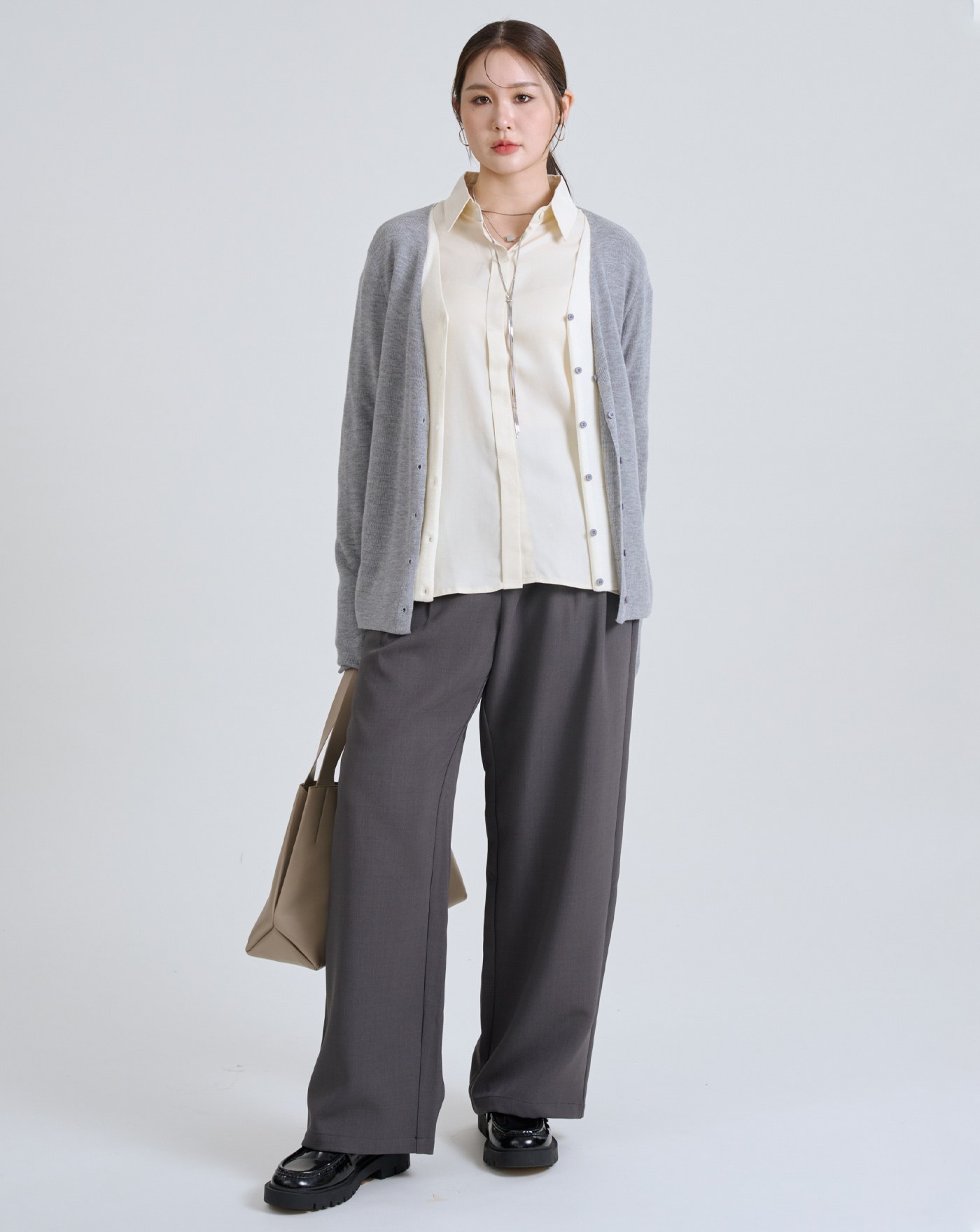 高腰打褶顯瘦直筒西裝褲(兩色)
