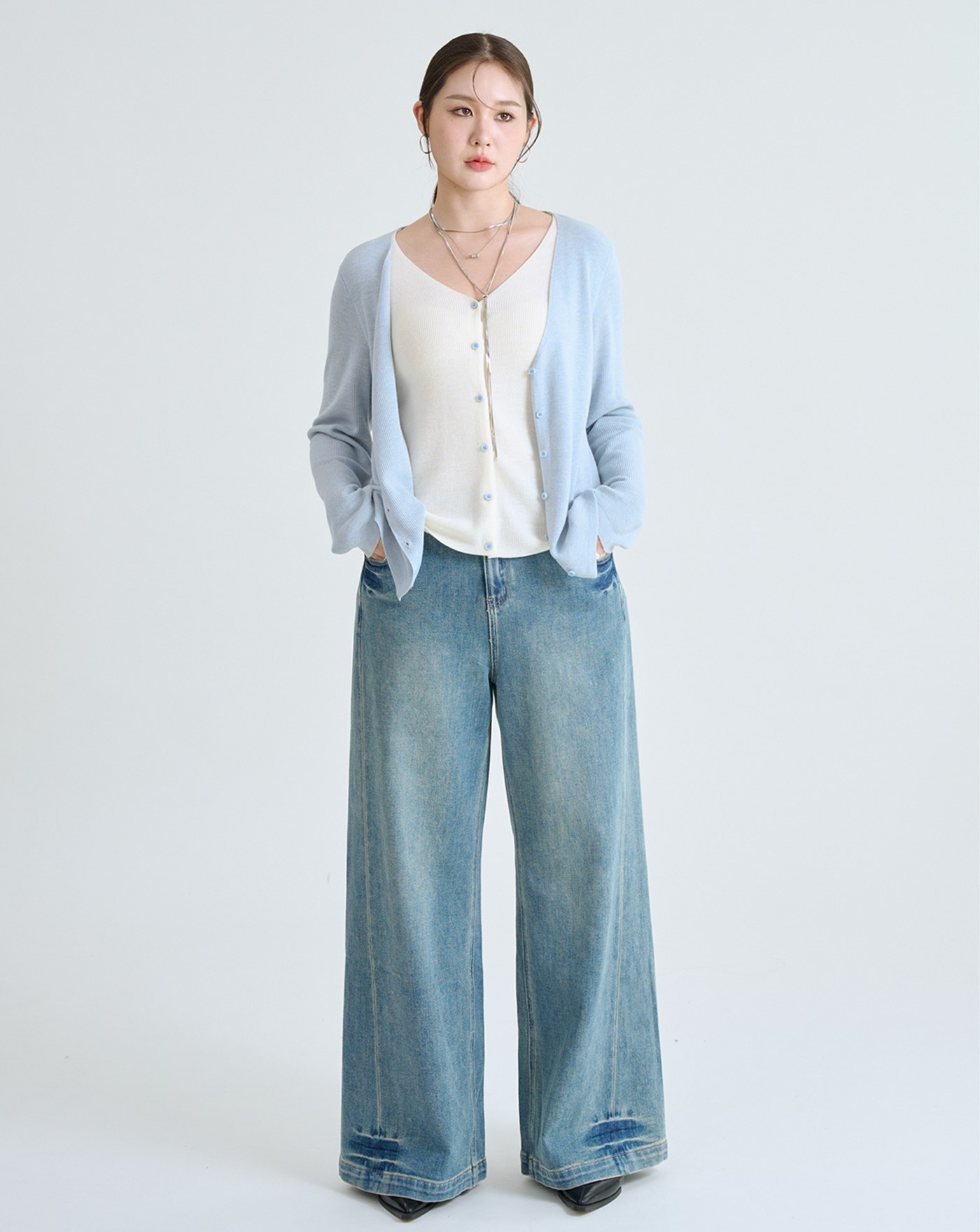 鏤空透膚開襟針織外套(三色)