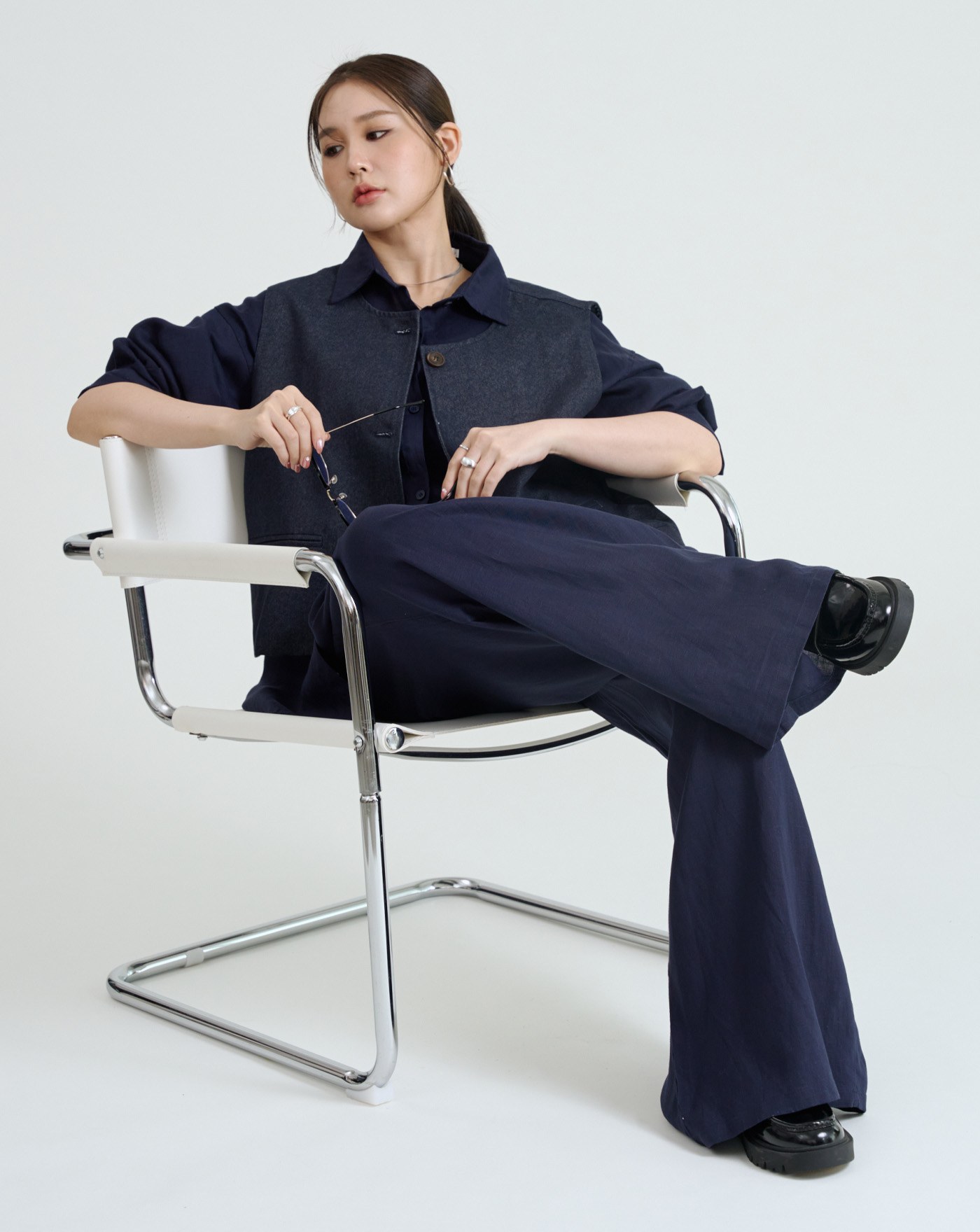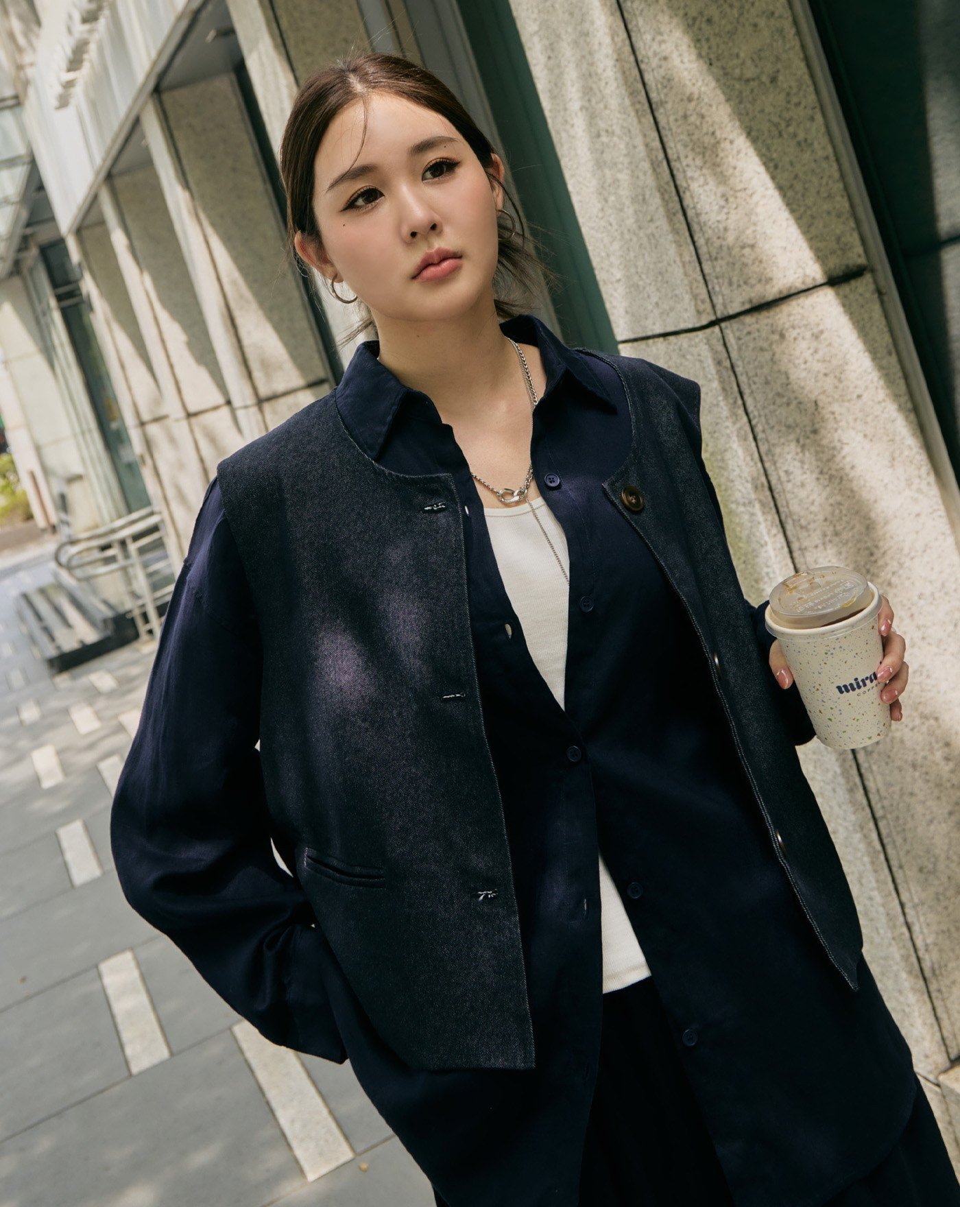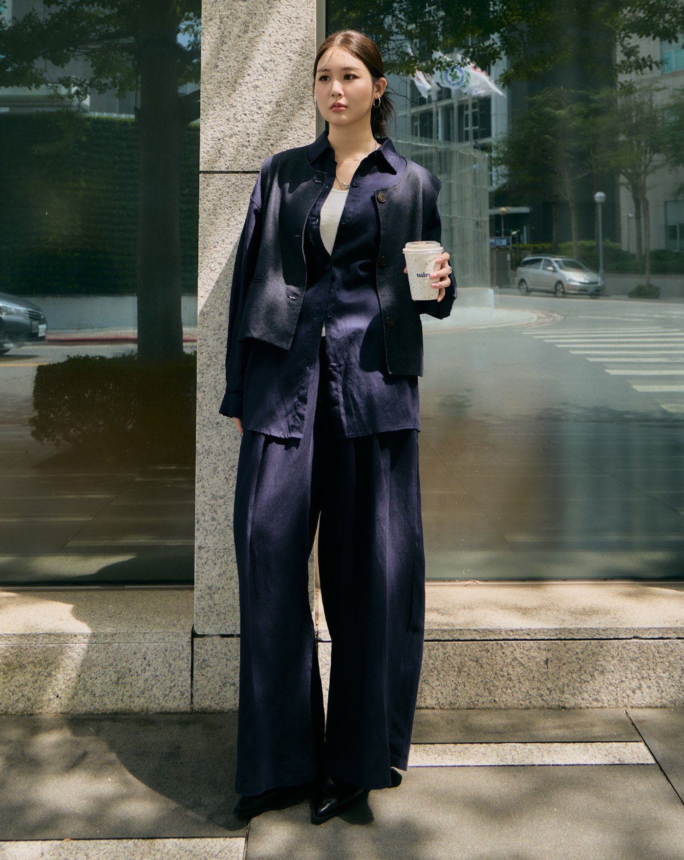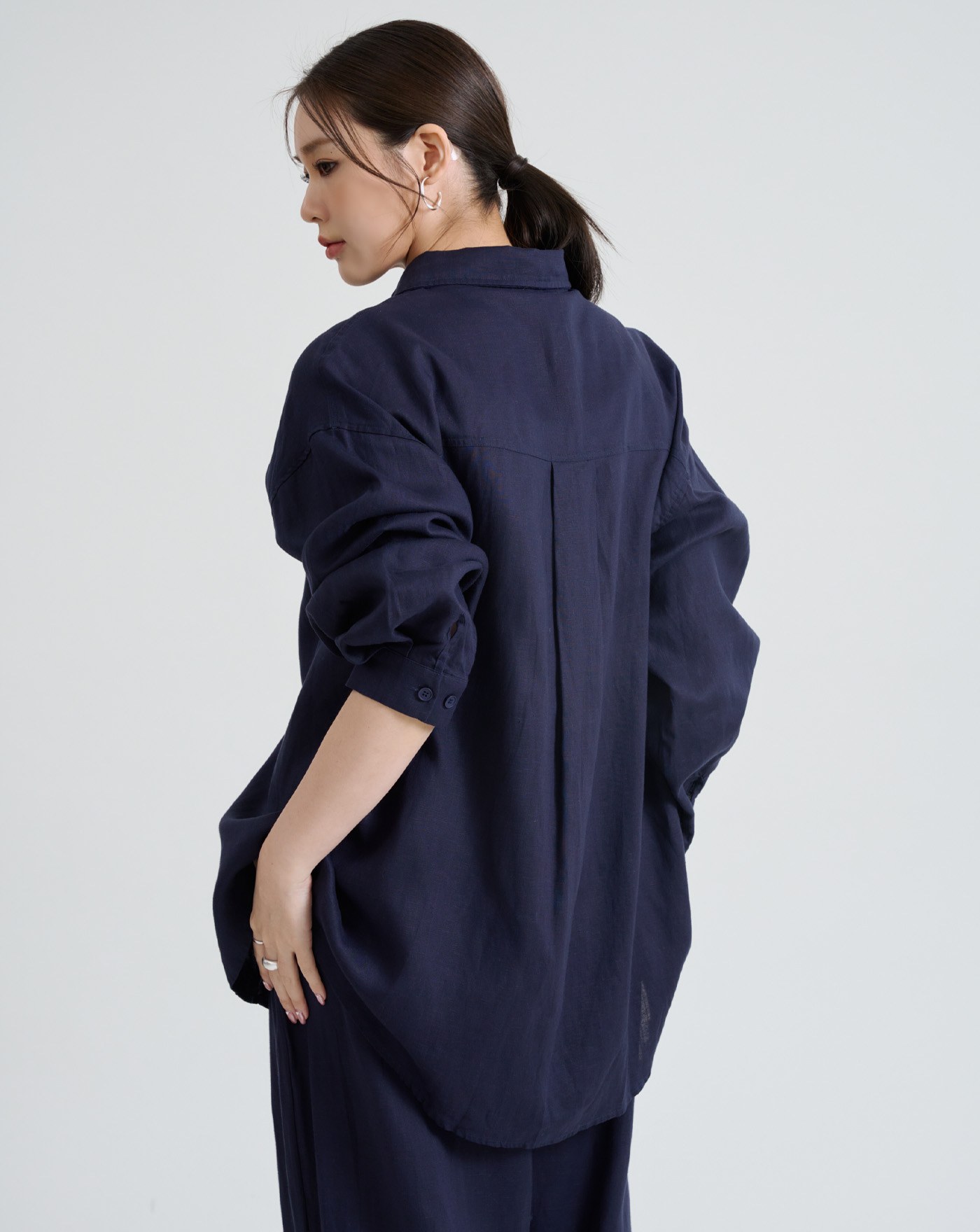 isn'tblue挺版圓弧下擺寬鬆襯衫