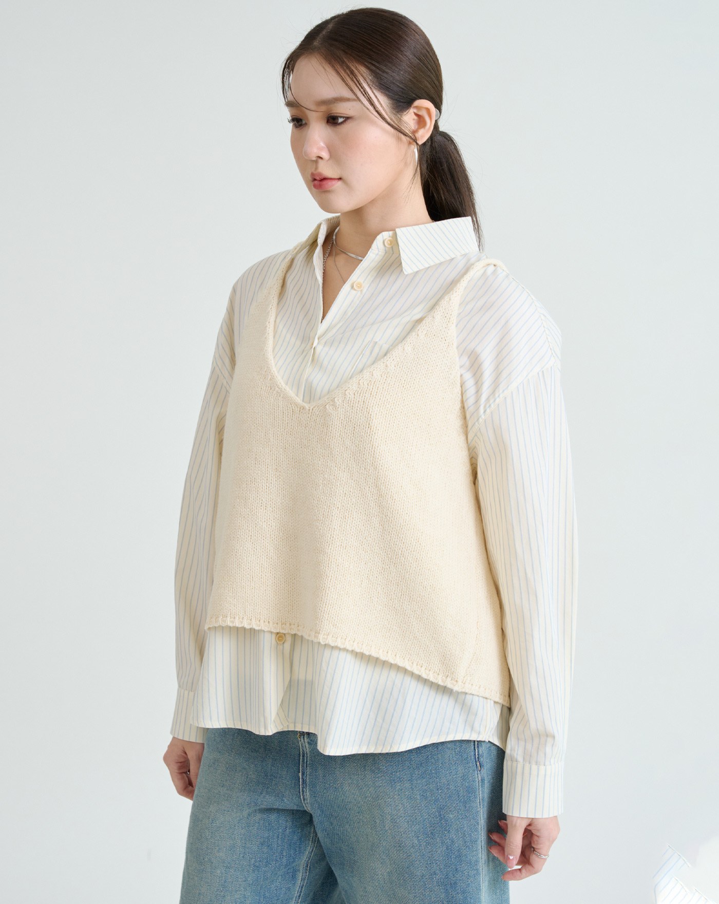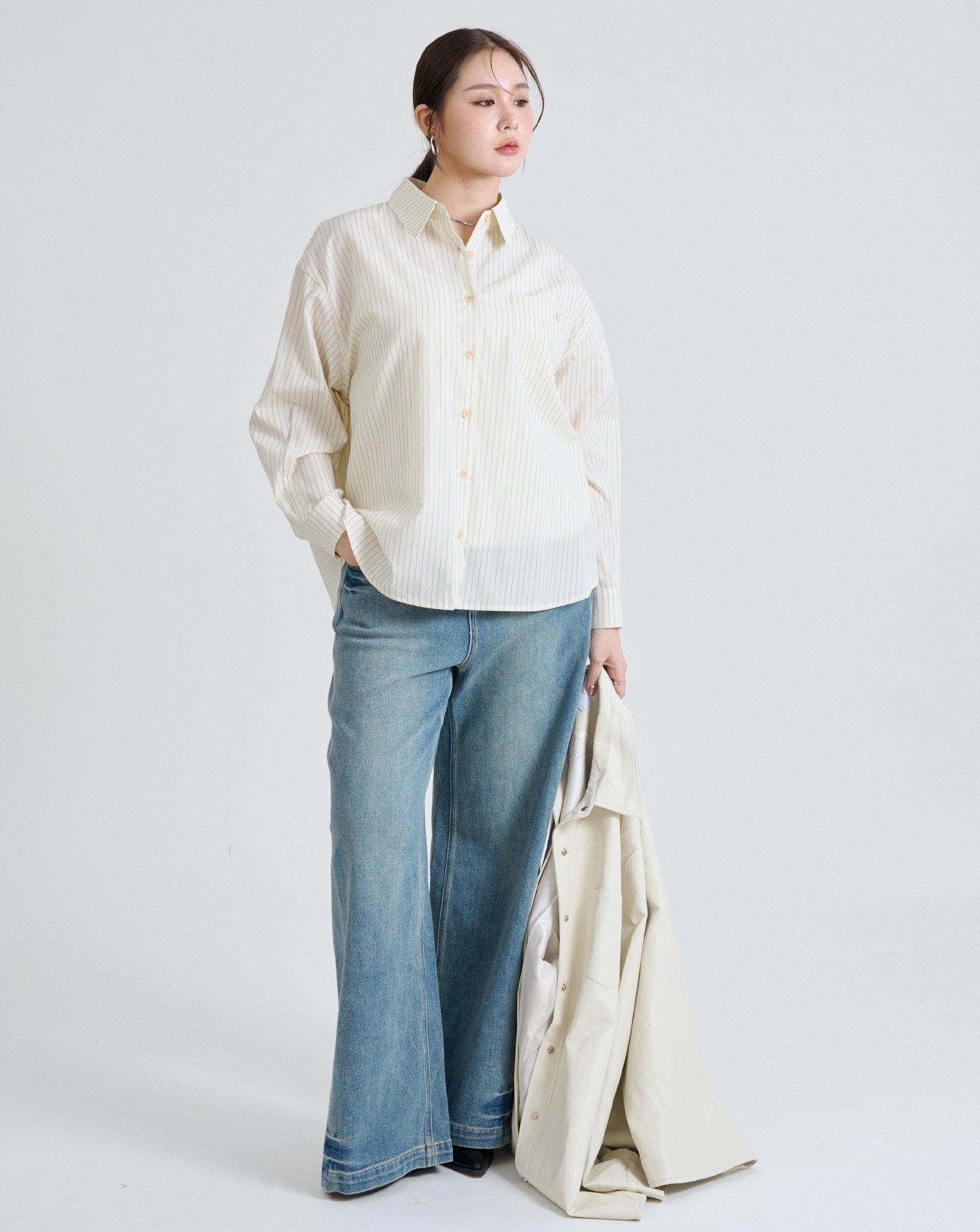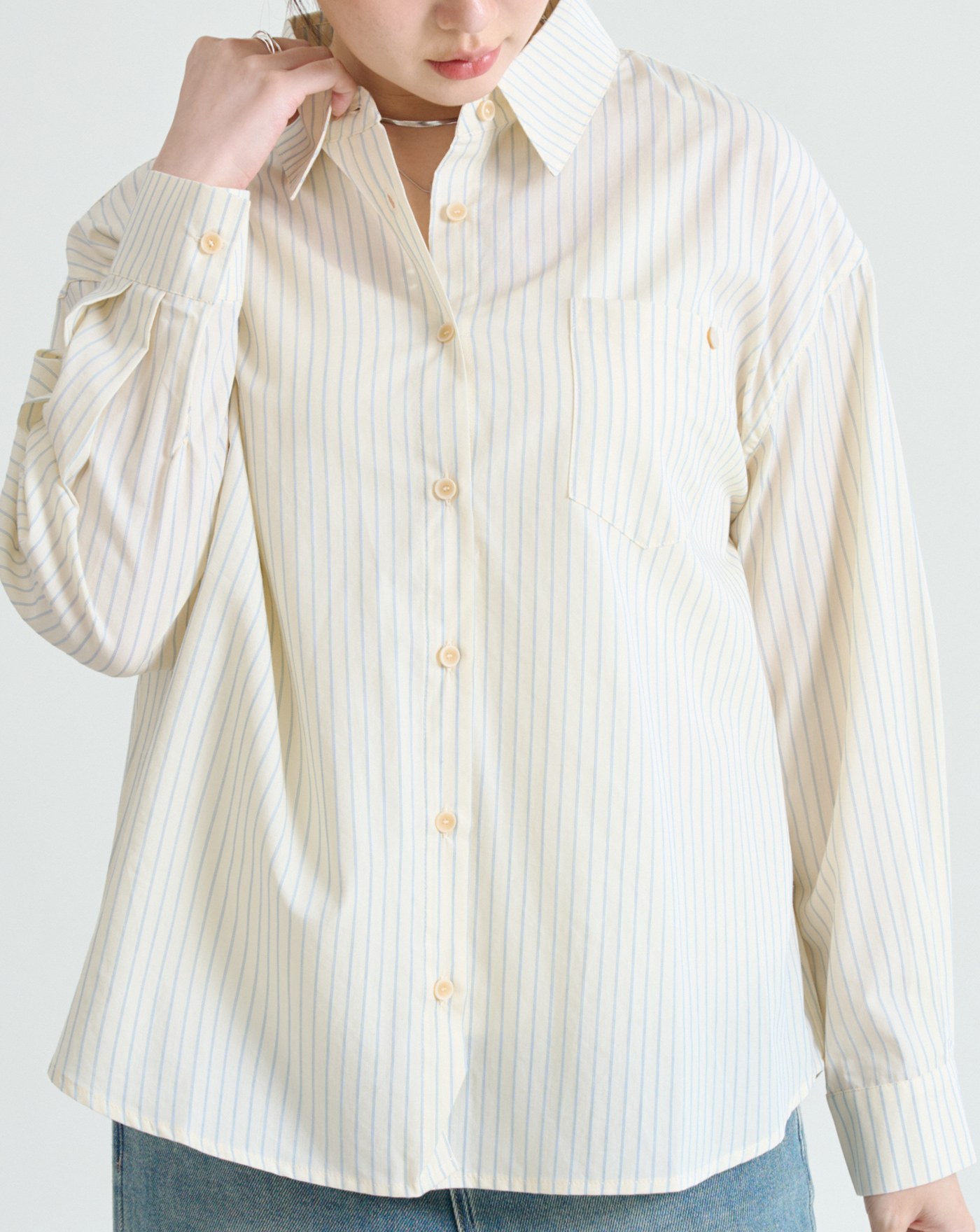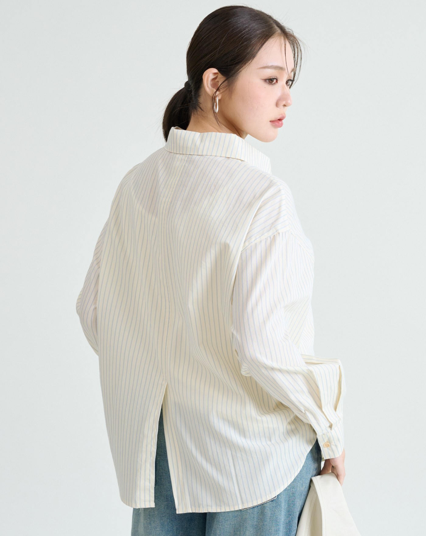 isn'tblue挺版圓弧下擺寬鬆襯衫