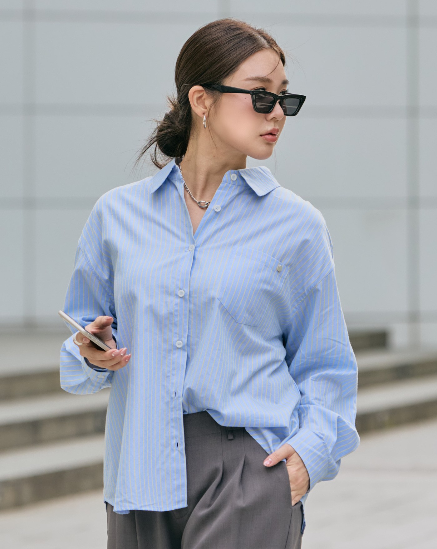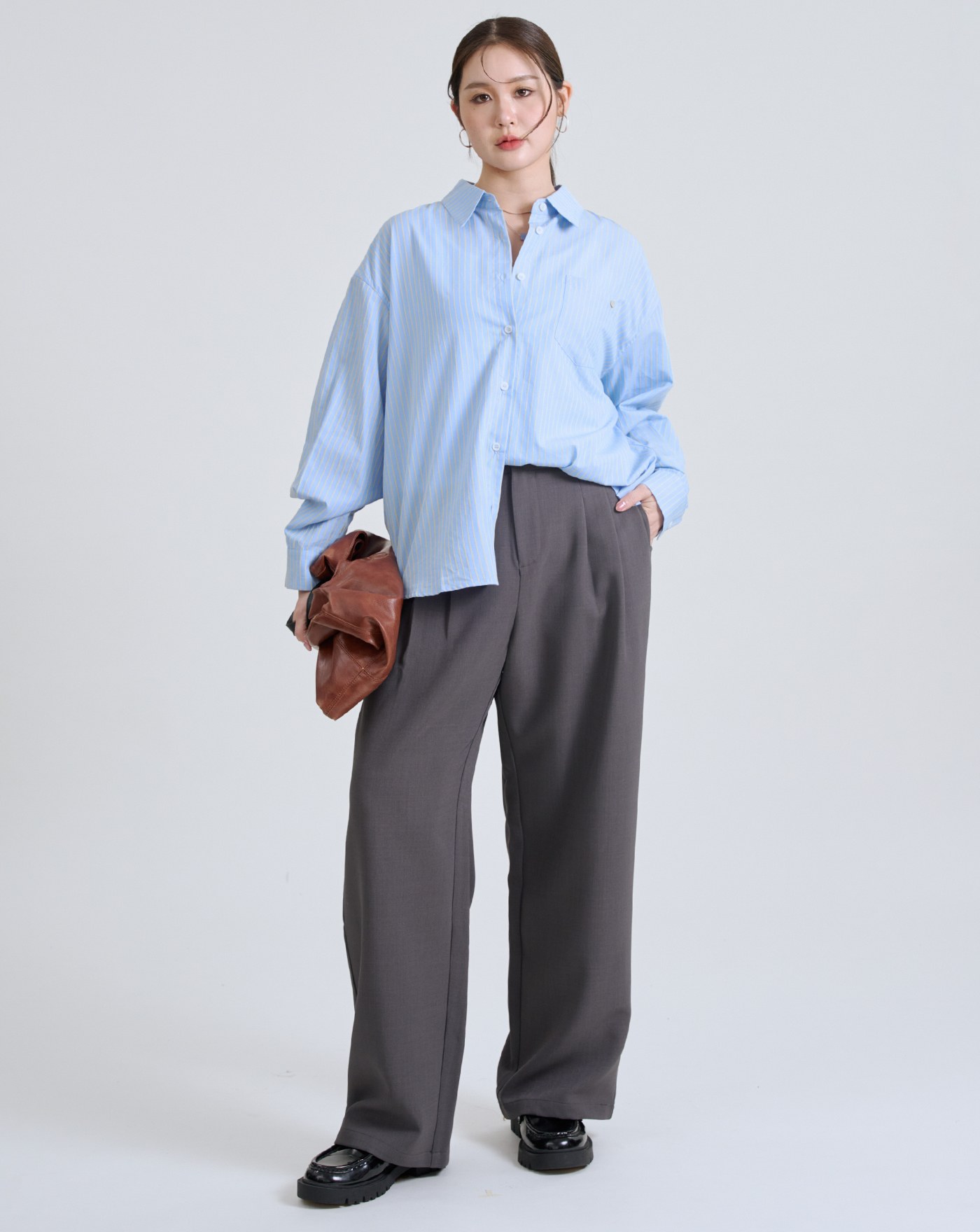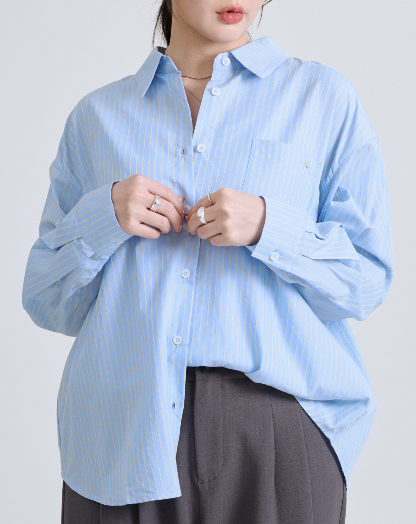 isn'tblue挺版圓弧下擺寬鬆襯衫