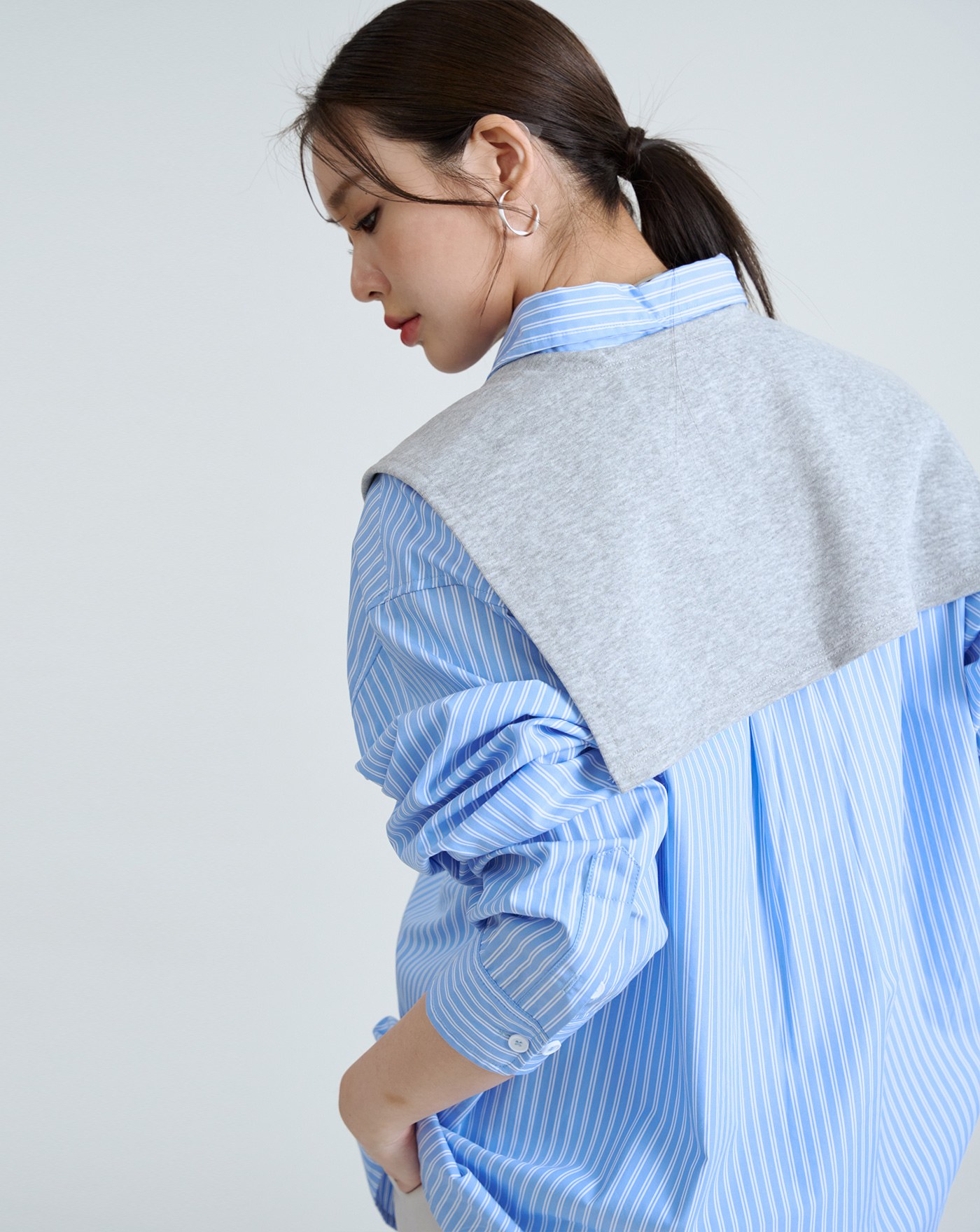 isn'tblue挺版圓弧下擺寬鬆襯衫