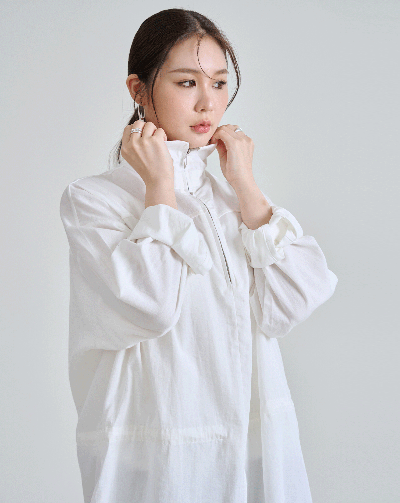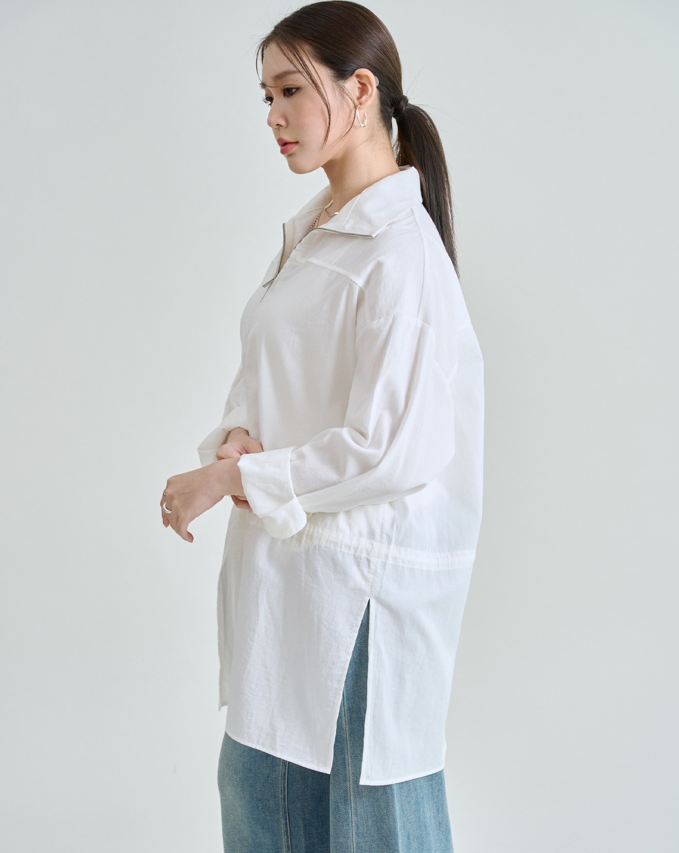 細節車線防捲立領不勒脖上衣(兩色)
