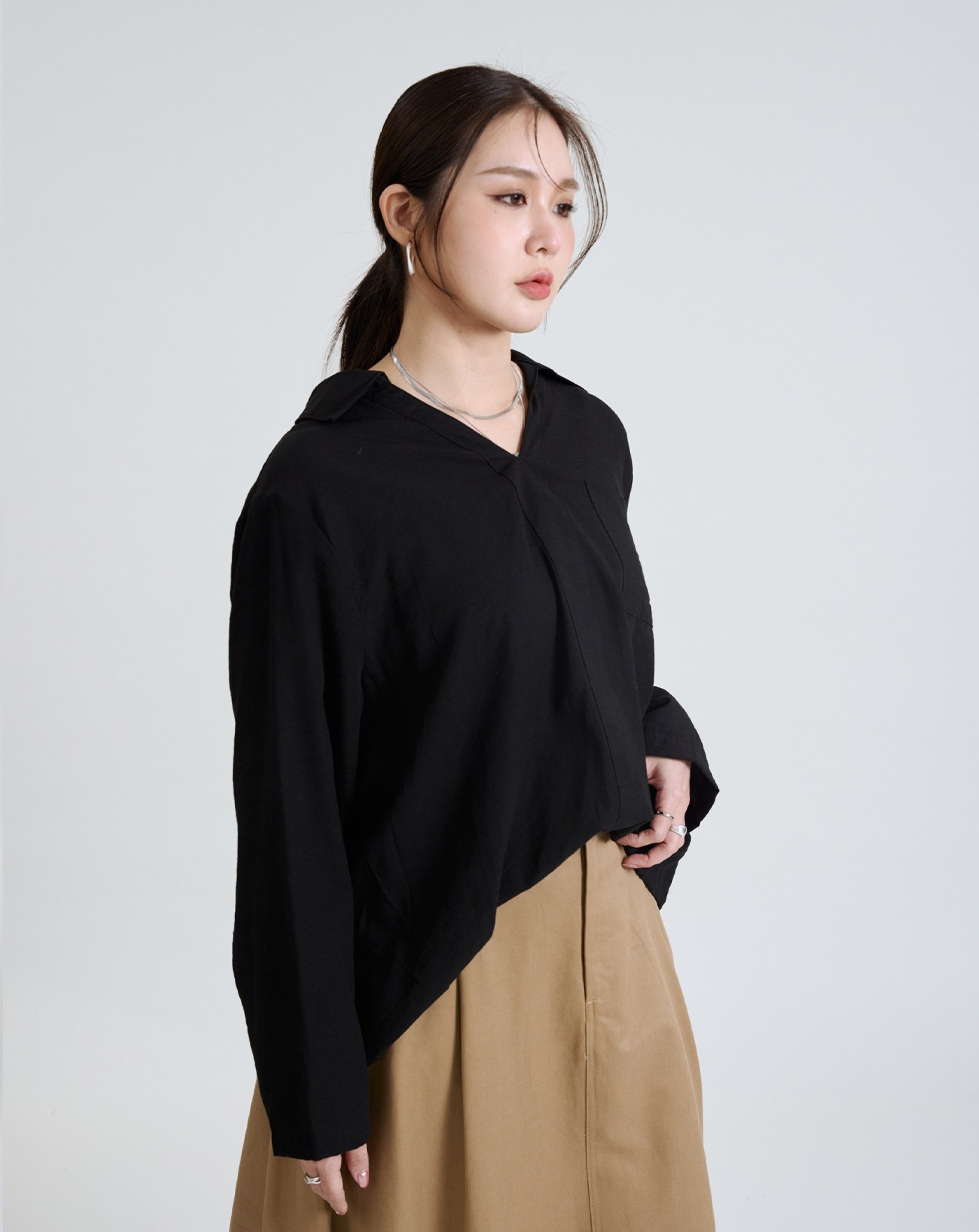 isn'tblue挺版圓弧下擺寬鬆襯衫