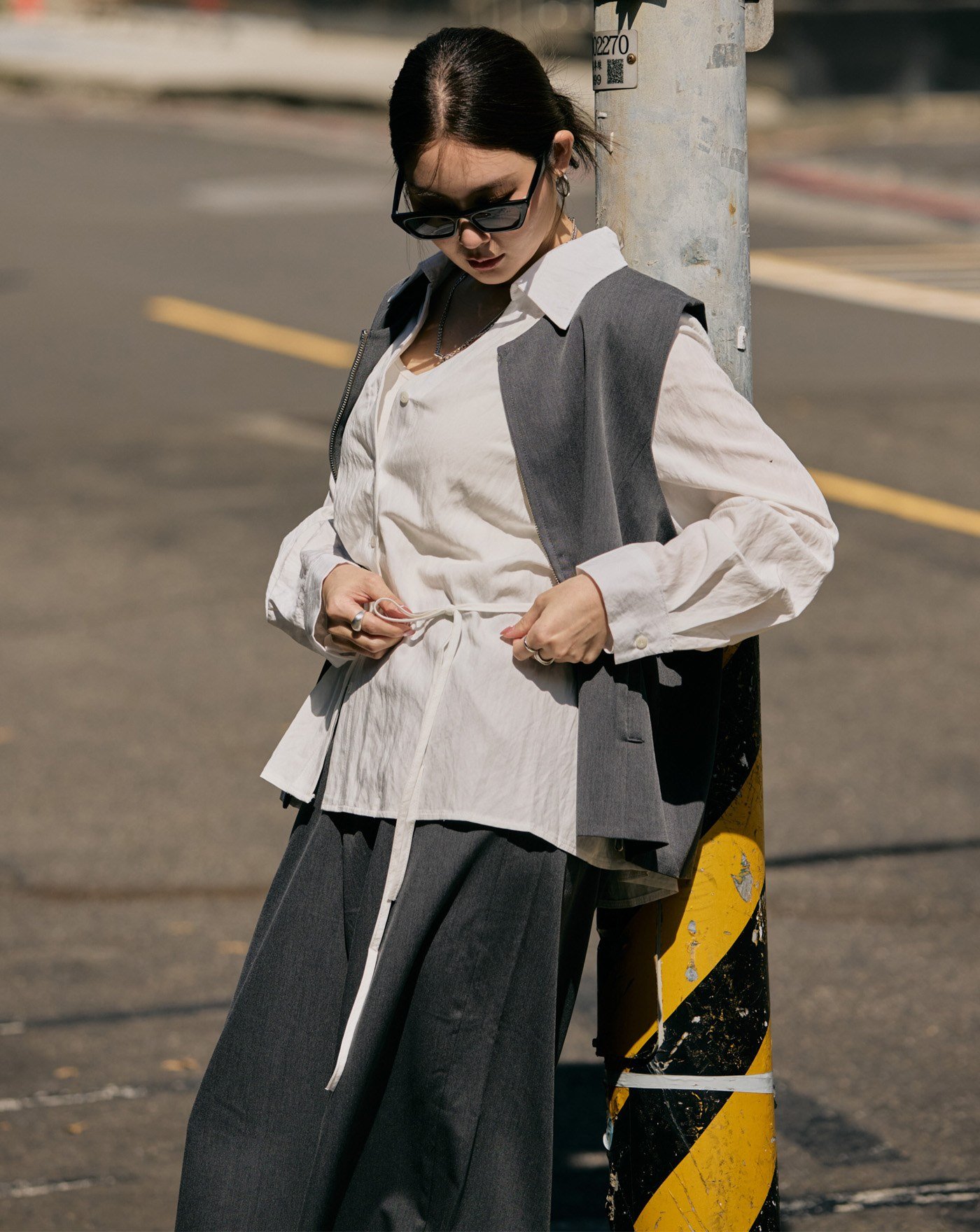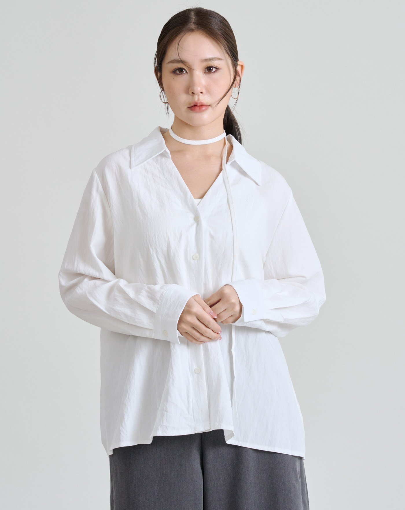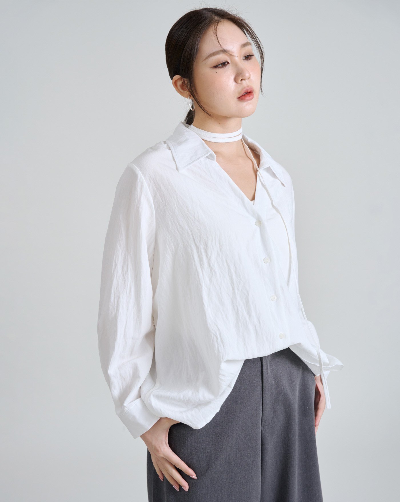 isn'tblue挺版圓弧下擺寬鬆襯衫