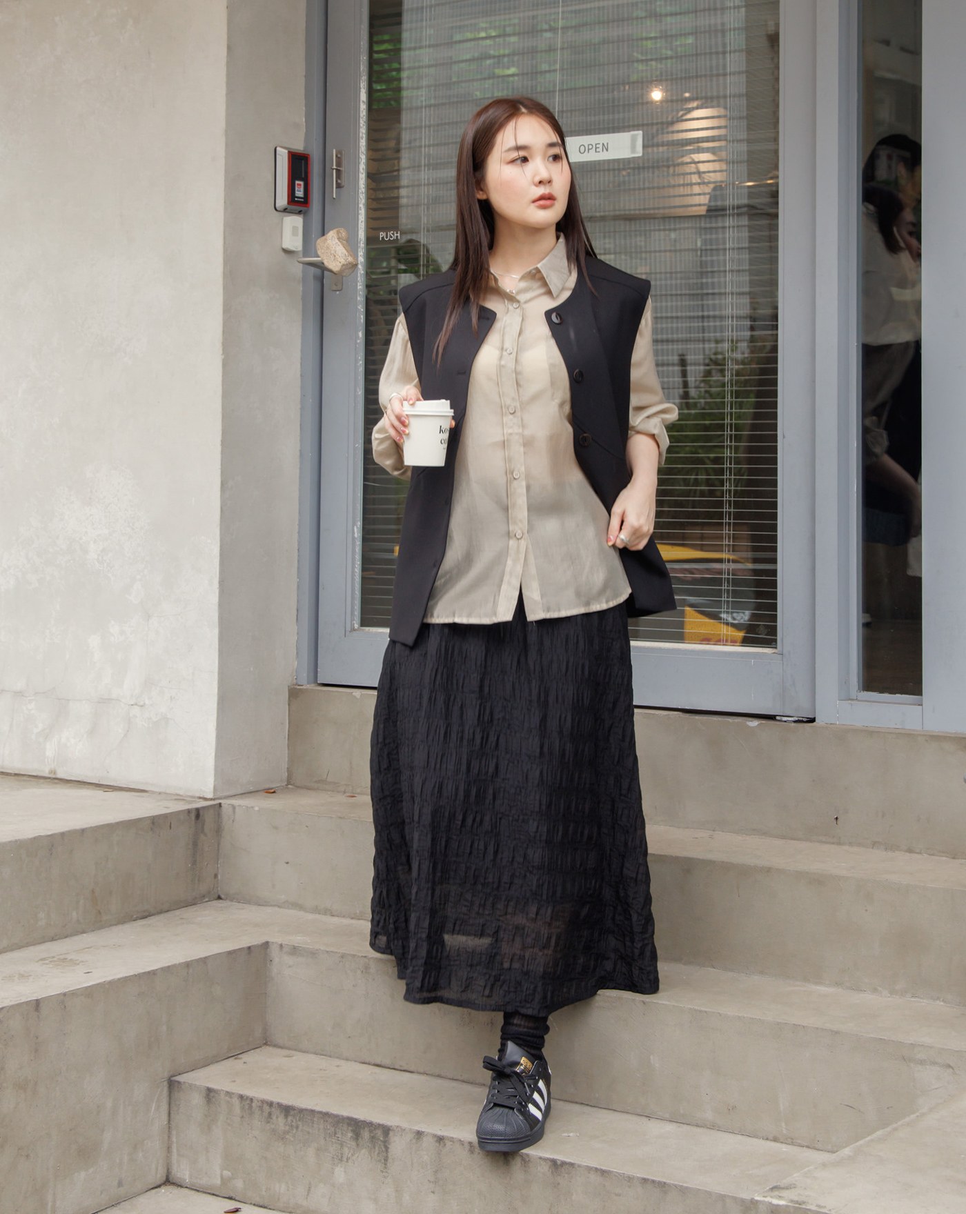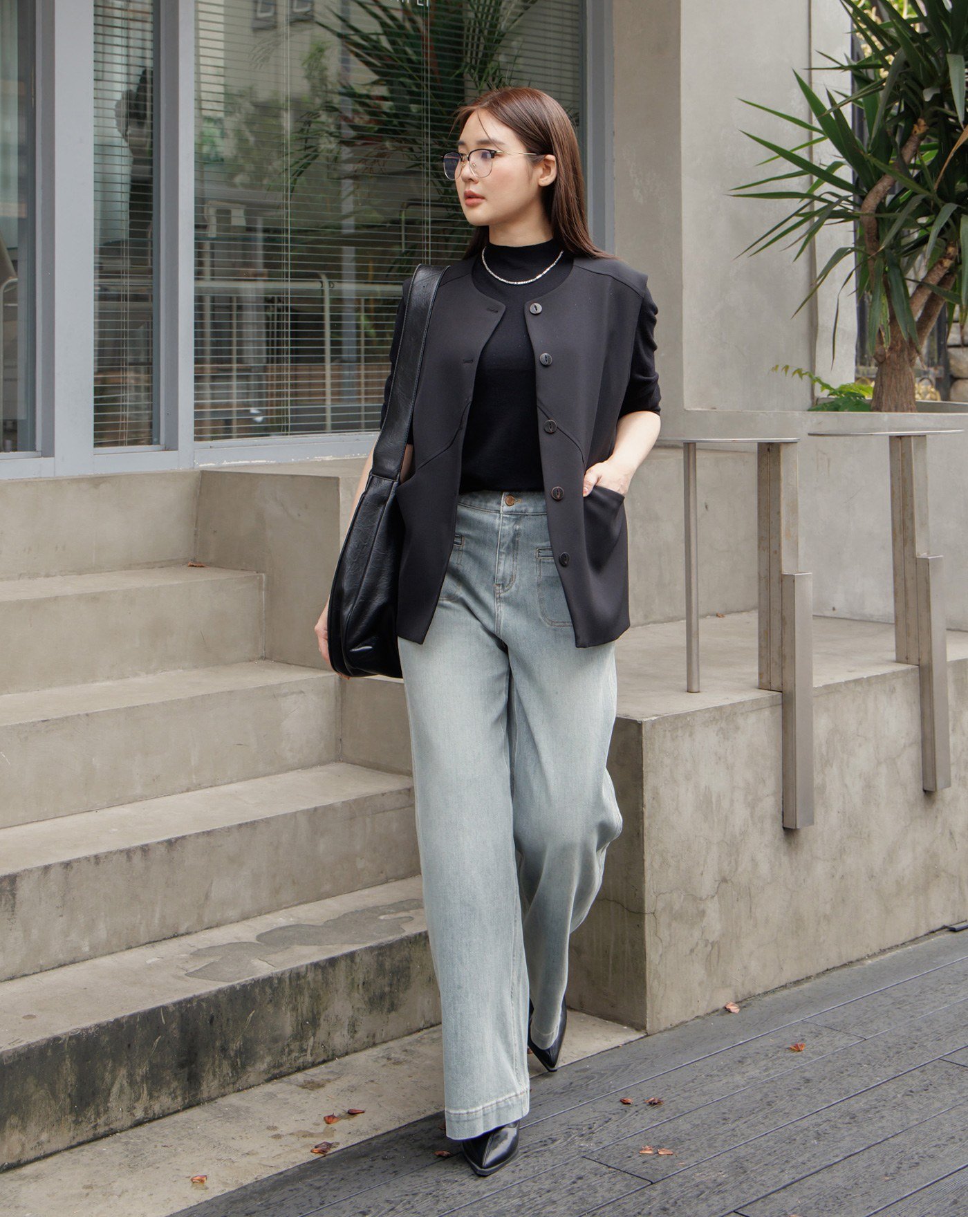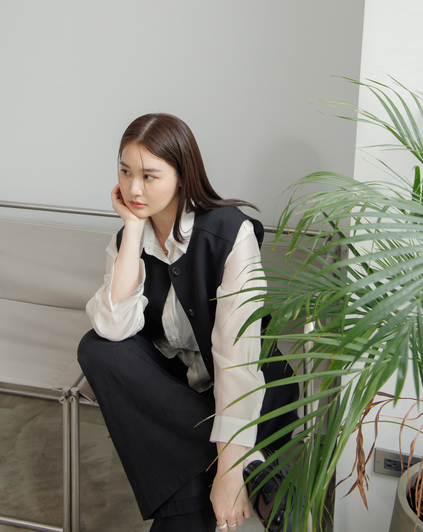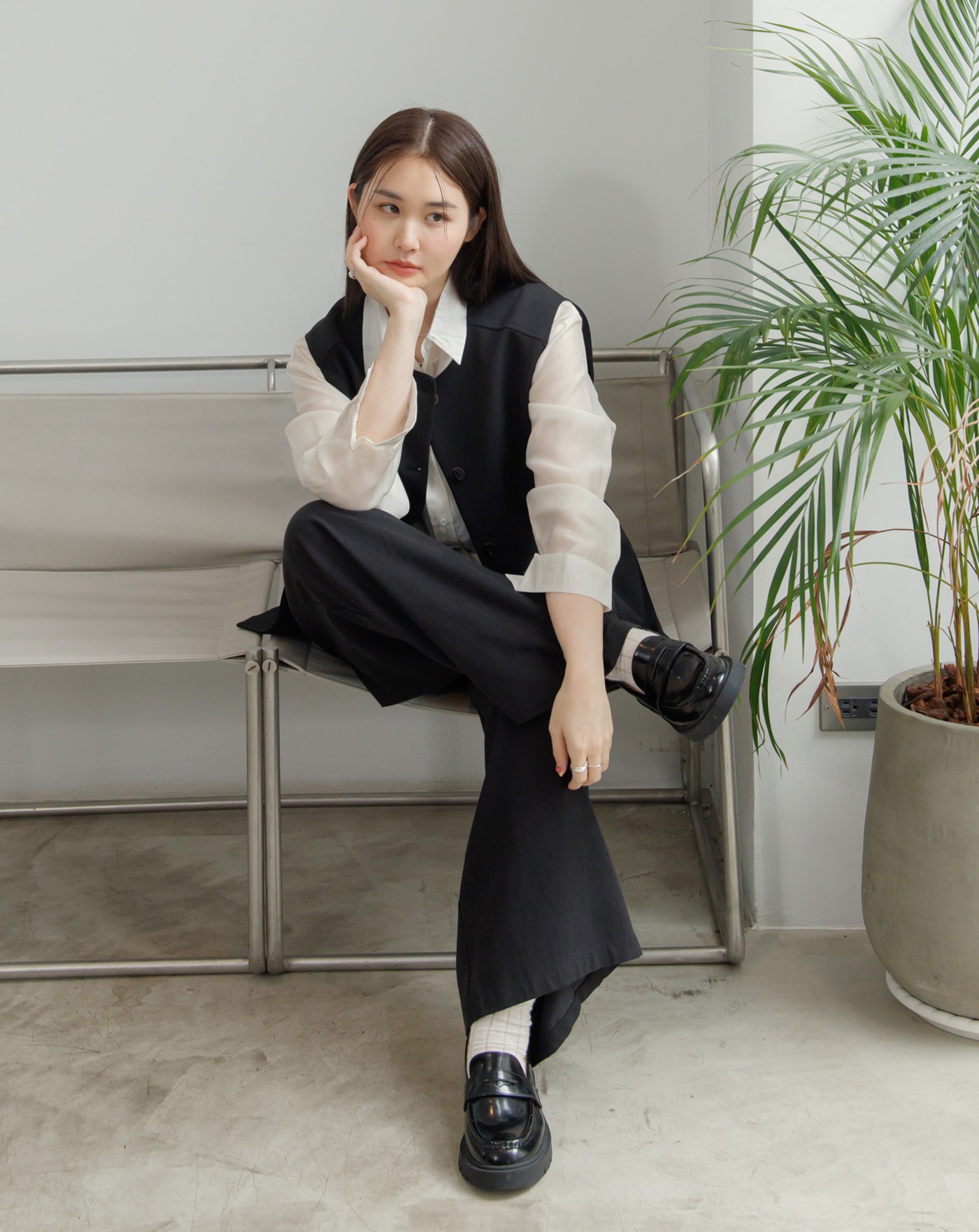 俐落打褶西裝直筒寬褲