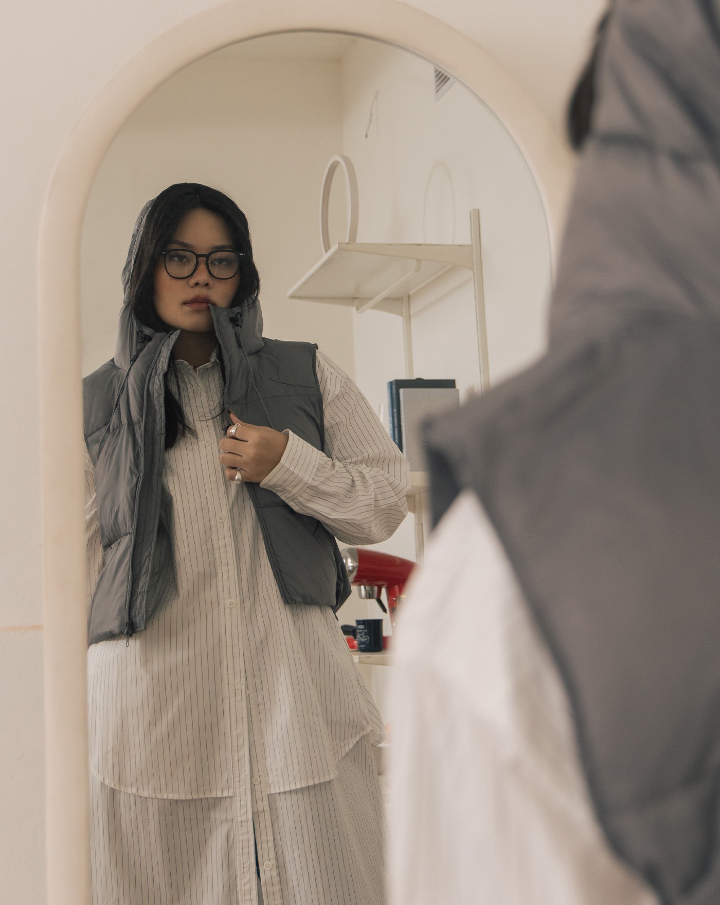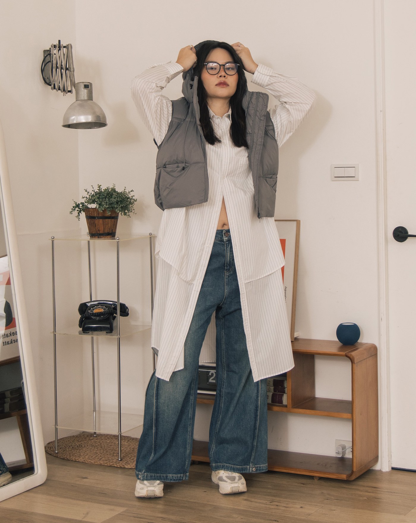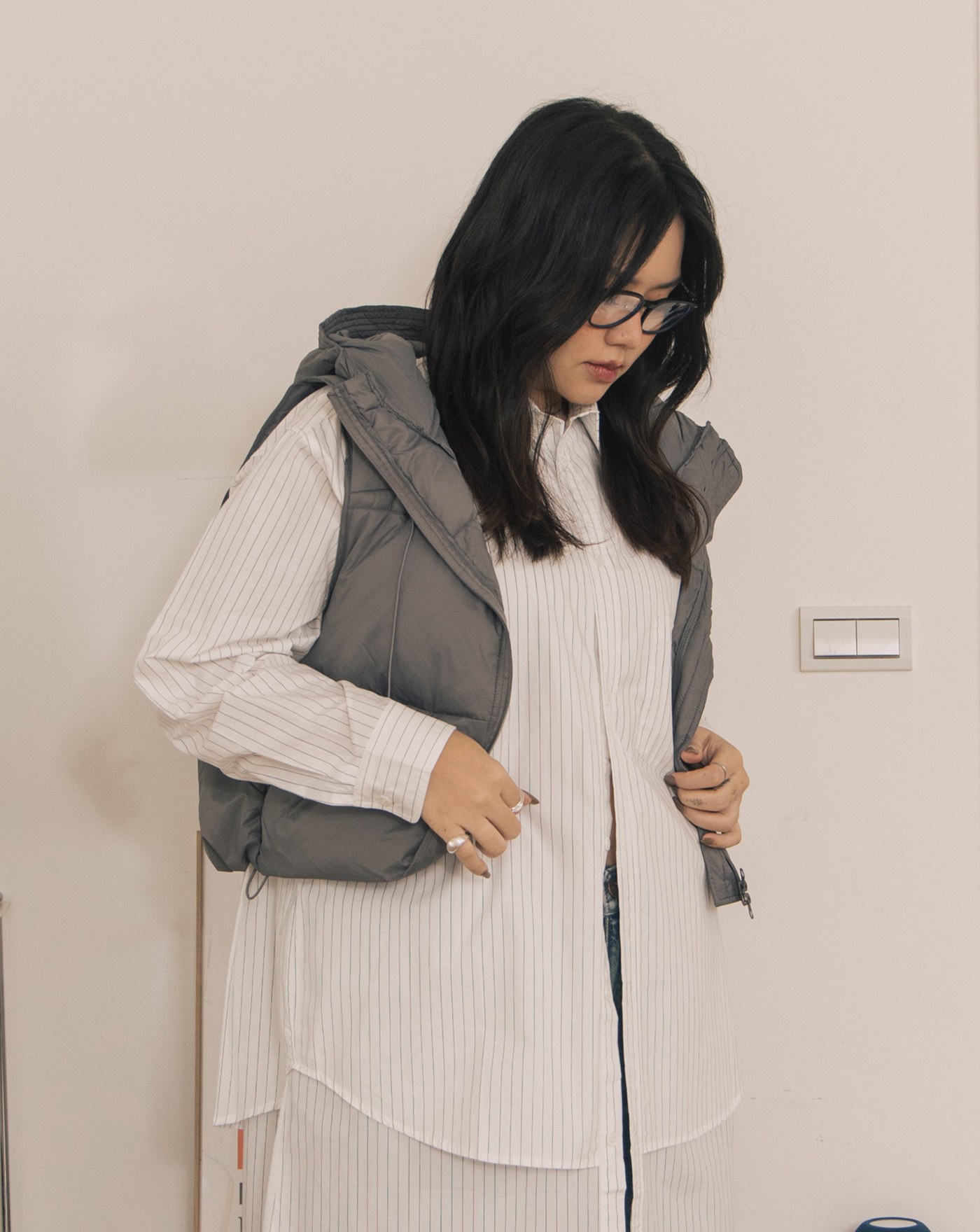 雙層設計純棉條紋襯衫洋裝(兩色)