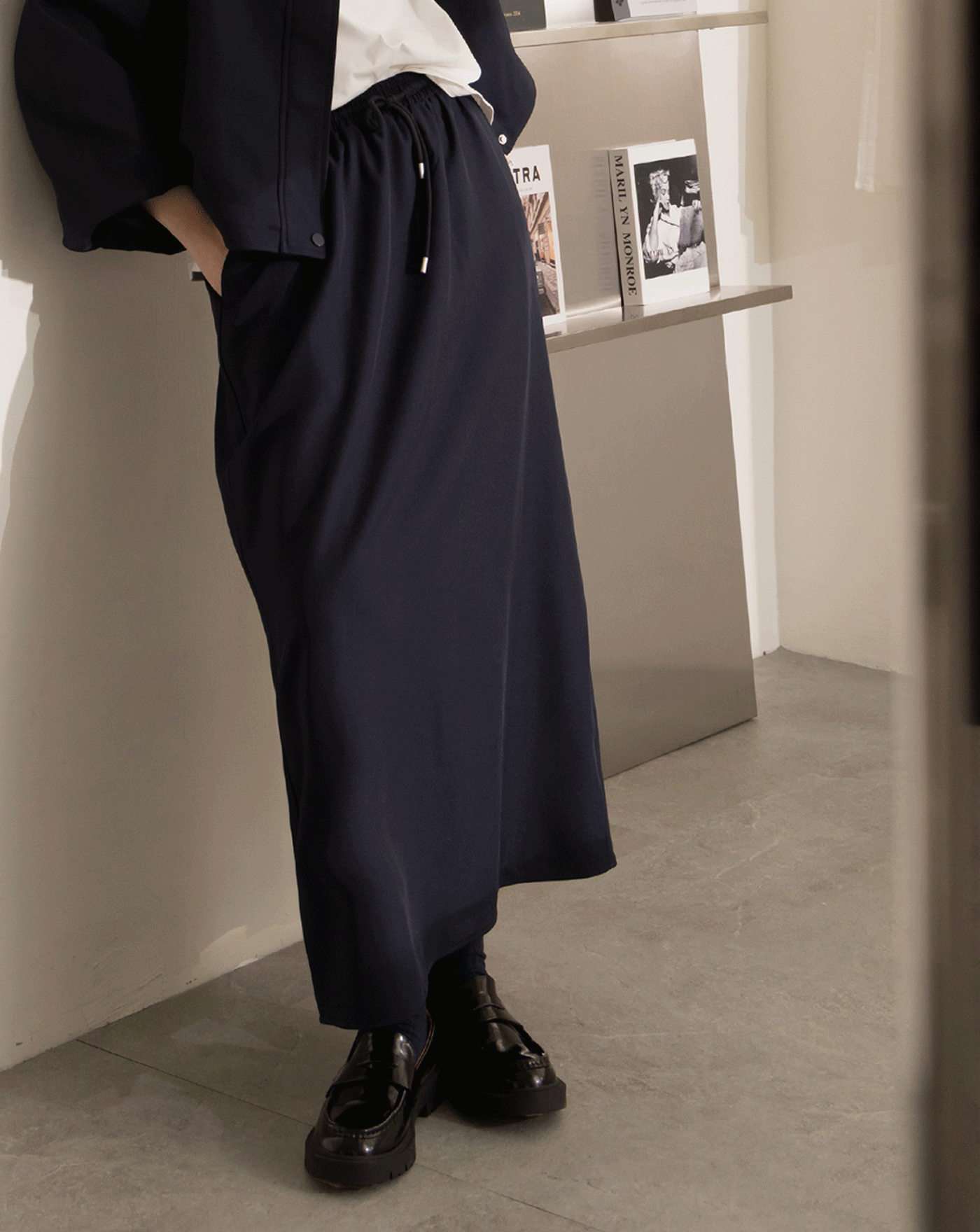 遮胯必備後鬆緊天絲A字長裙(兩色)