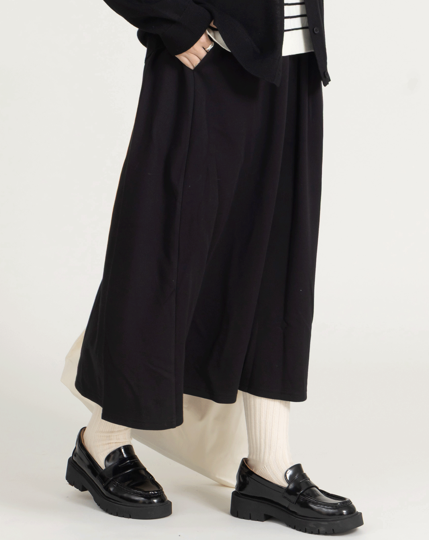 遮胯必備寬百褶西裝A字長裙(兩色)
