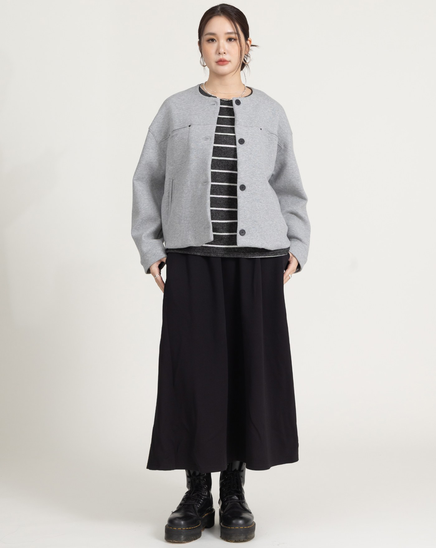 不顯臀型微正式西裝面料全腰鬆緊長裙