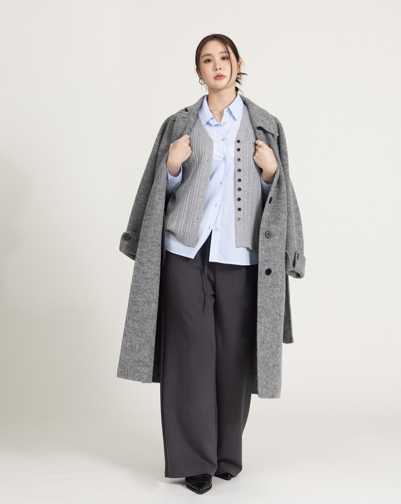高腰打褶顯瘦直筒西裝褲(兩色)
