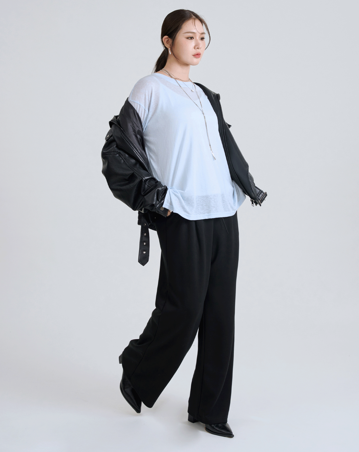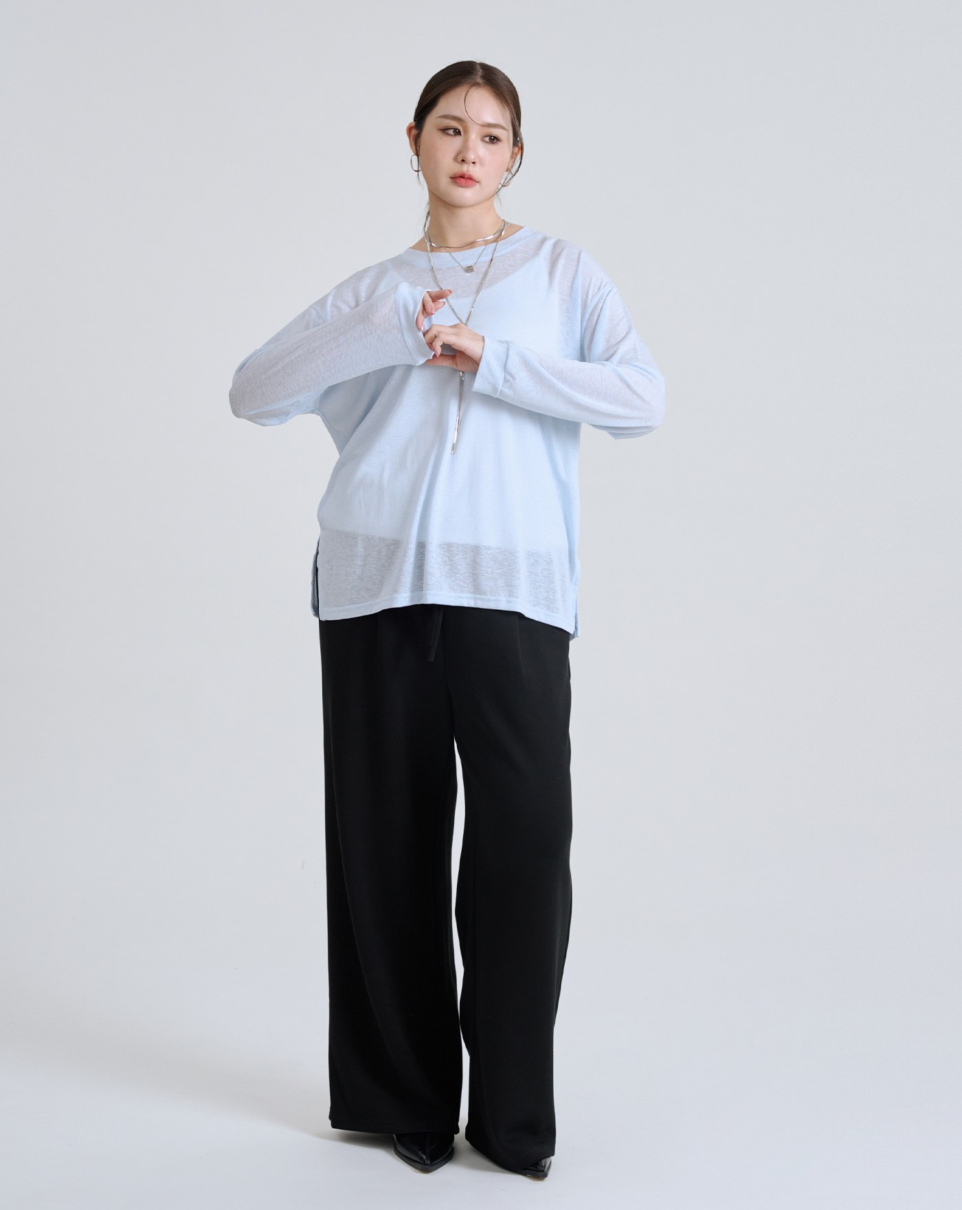 率性後腰鬆緊天絲直筒寬褲(兩色)