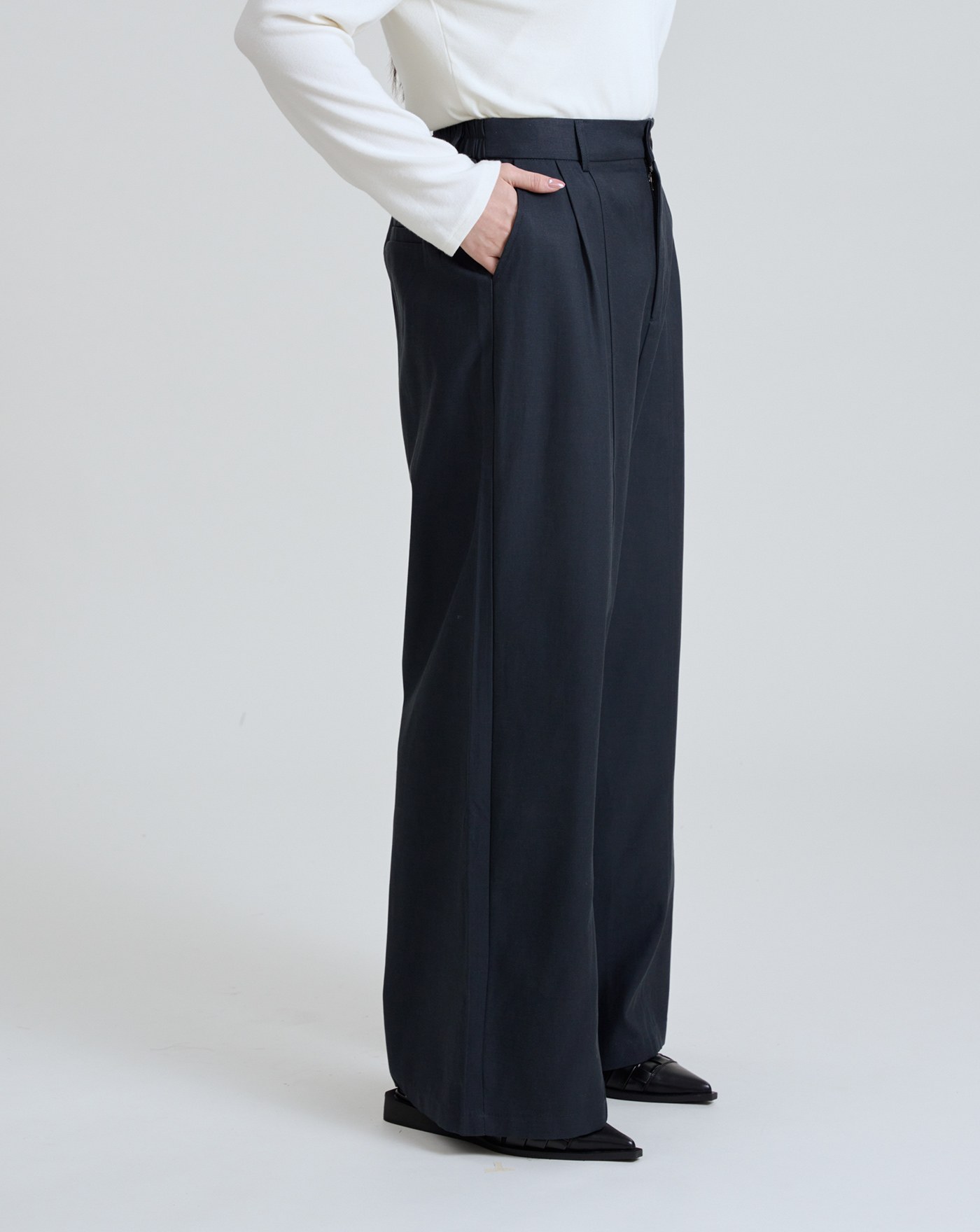 高腰打褶顯瘦直筒西裝褲(兩色)