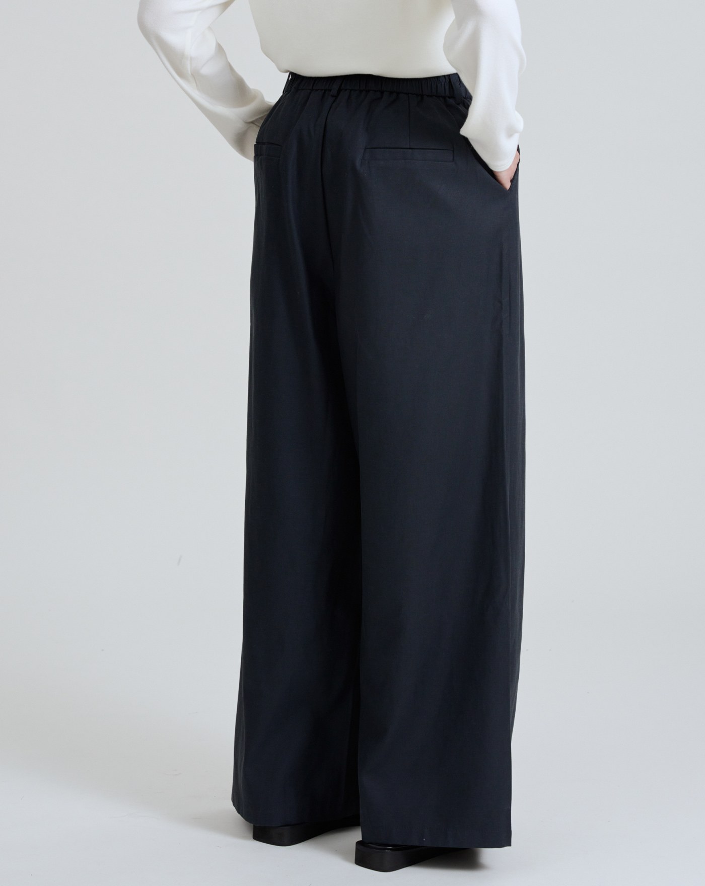 慵懶感鬆緊腰頭抽繩寬褲(兩色)
