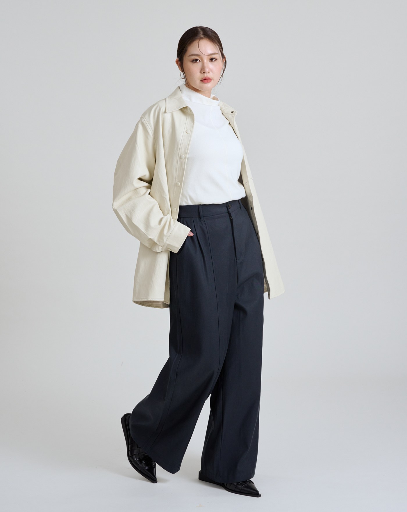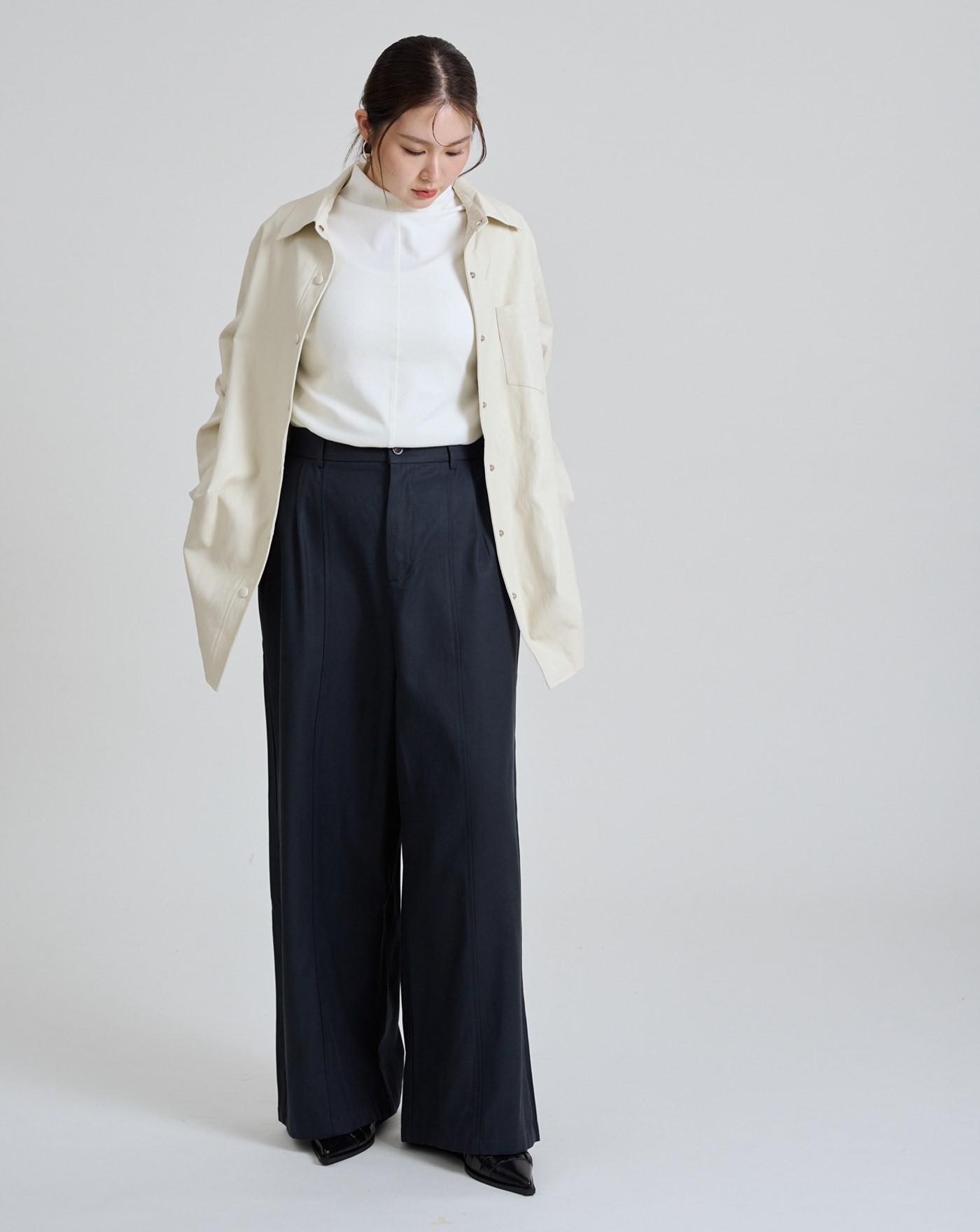 遮胯必備褲口反折西裝寬褲