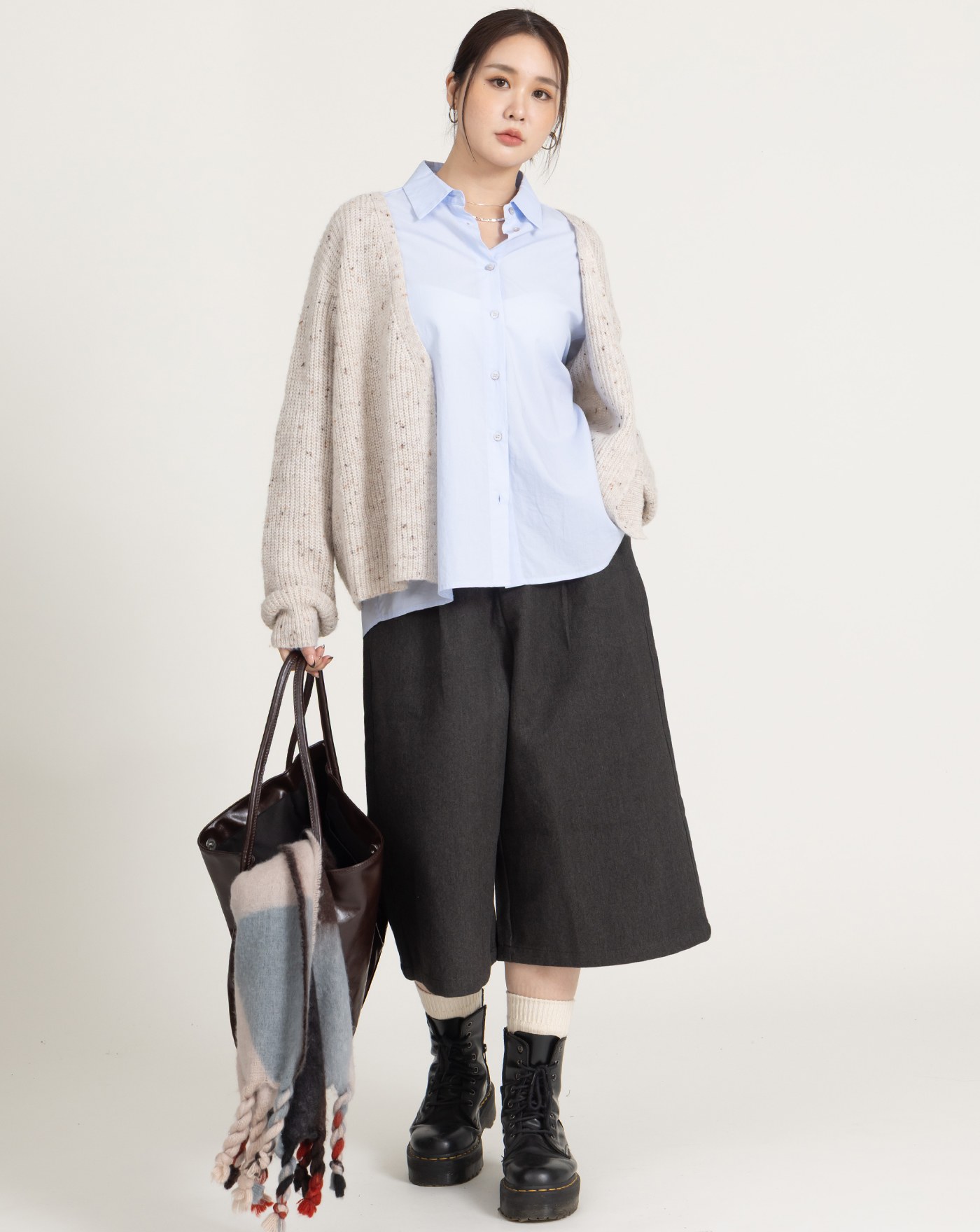 多WAY鈕扣抓摺百搭長袖襯衫(兩色)