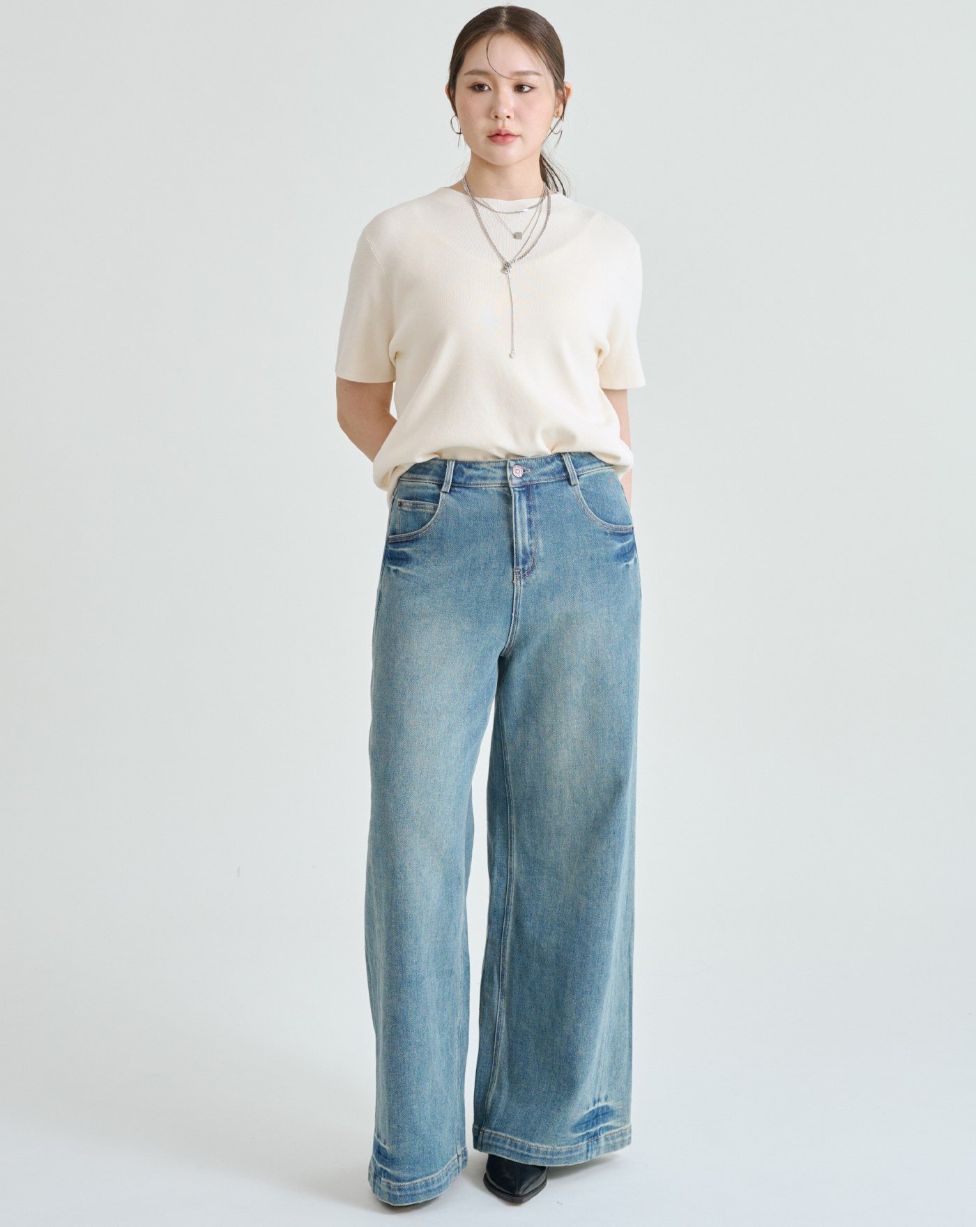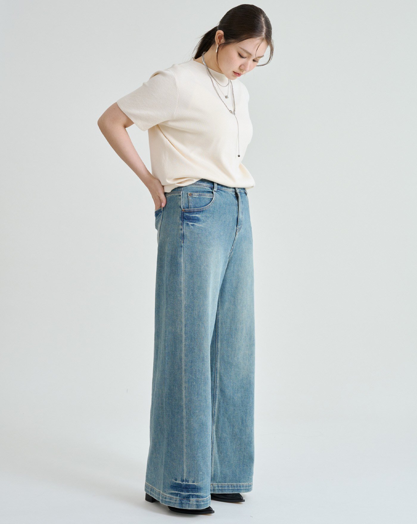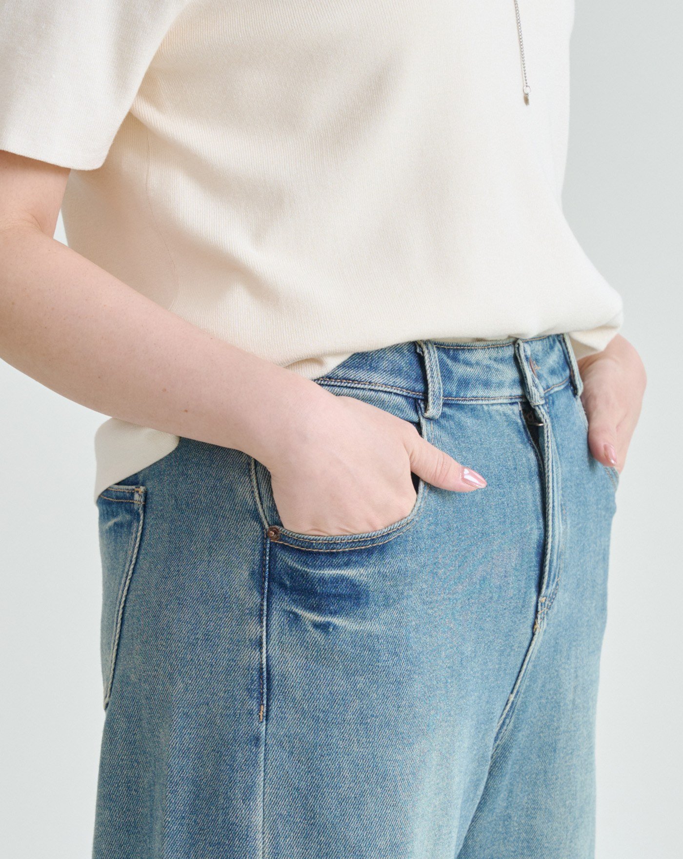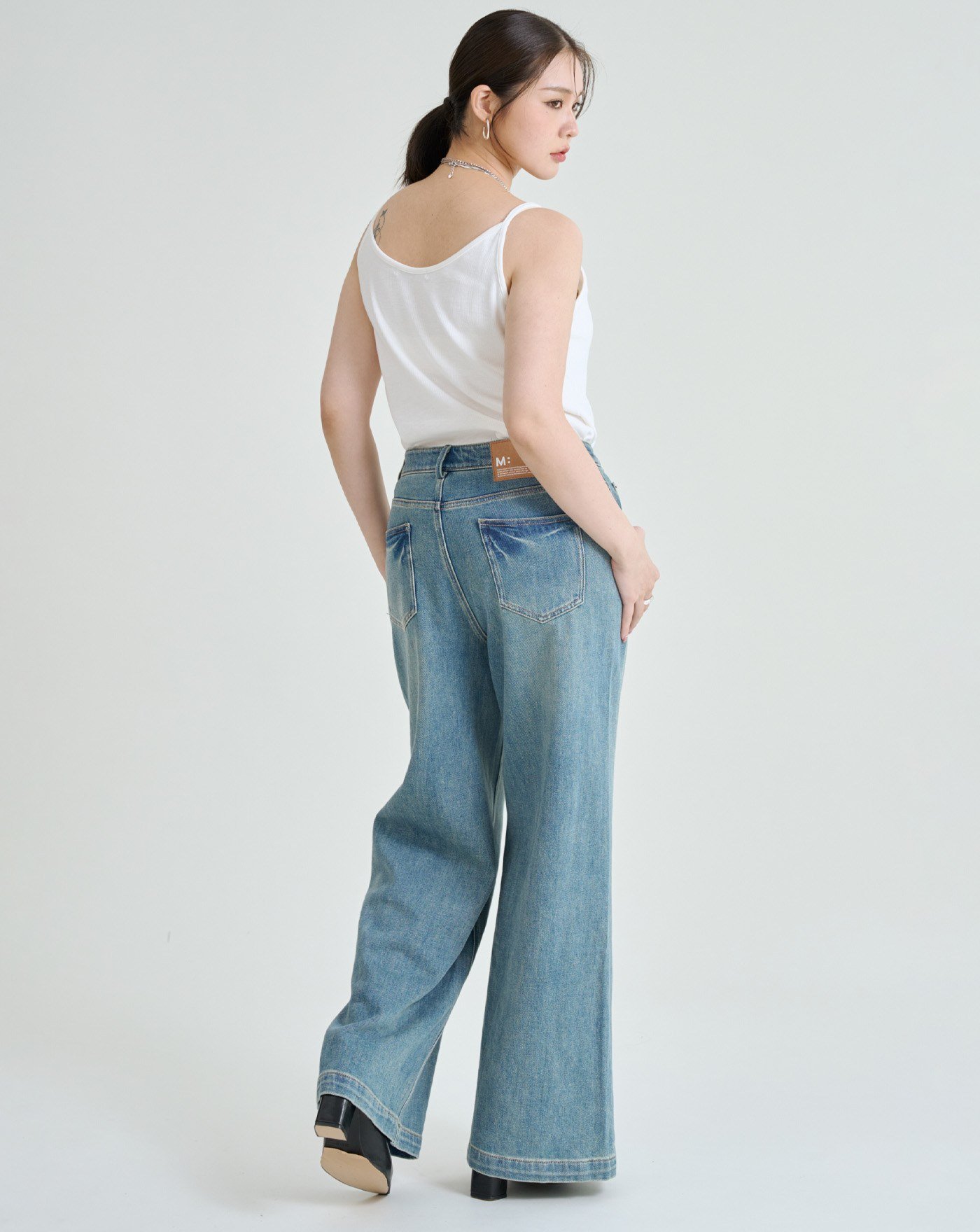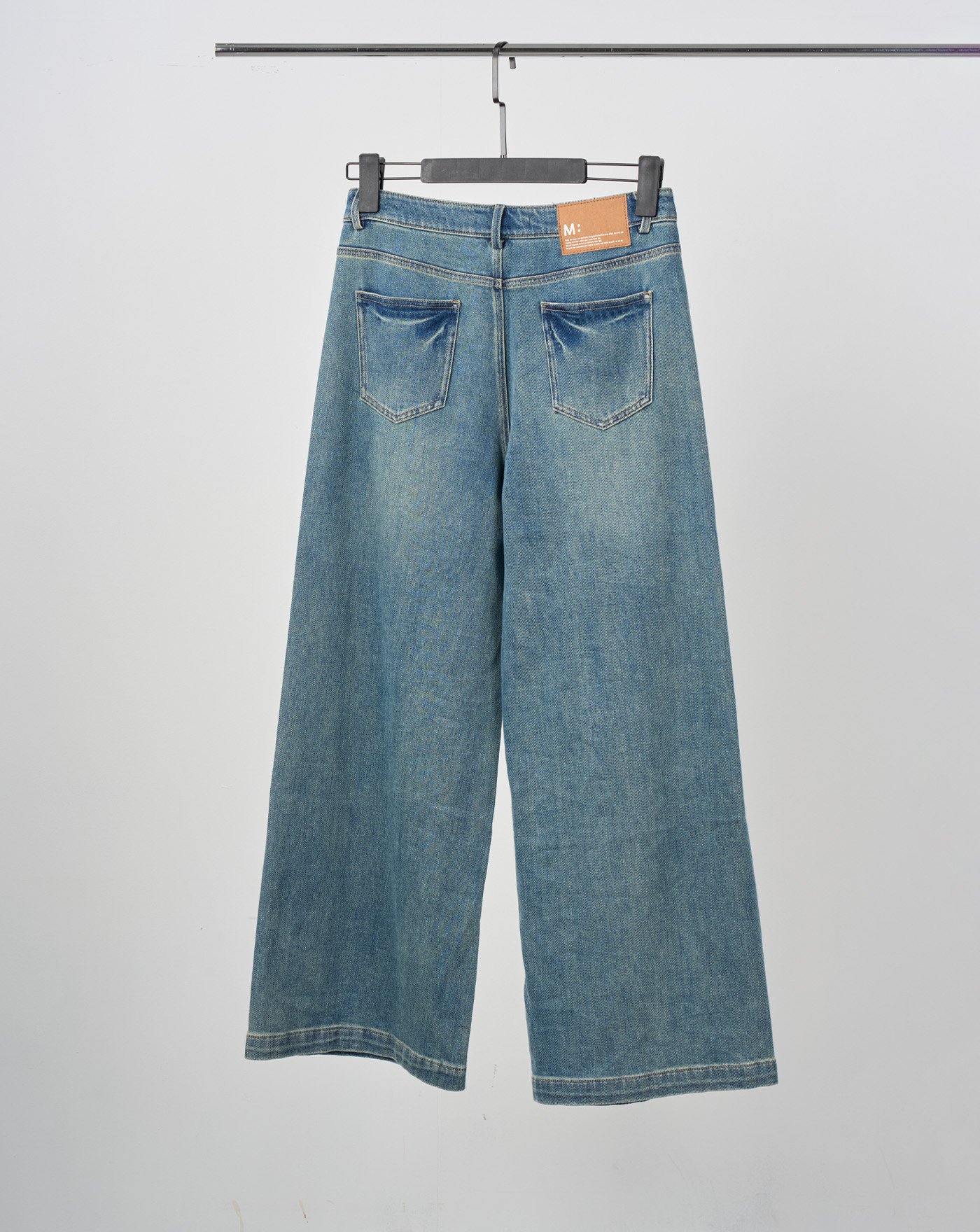 長腿顯瘦雙口袋造型直筒牛仔褲