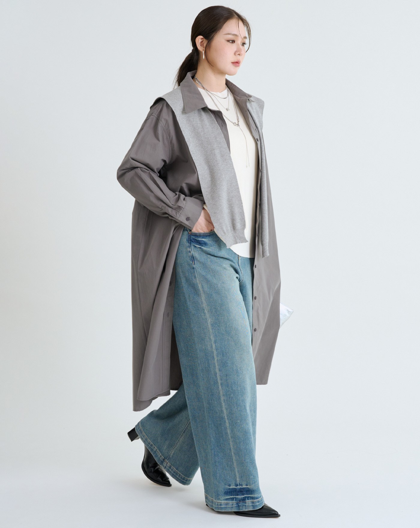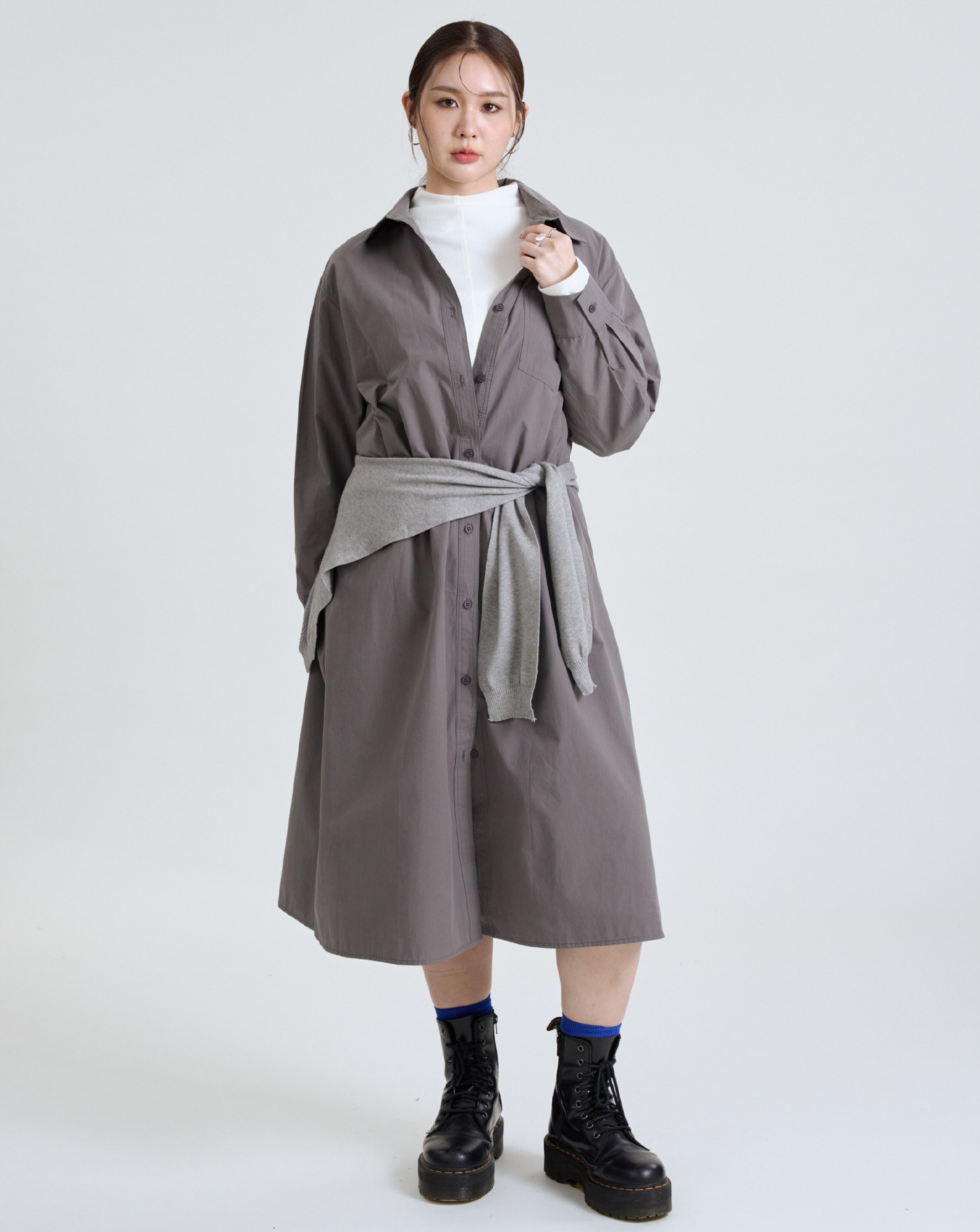 isn'tblue挺版圓弧下擺寬鬆襯衫