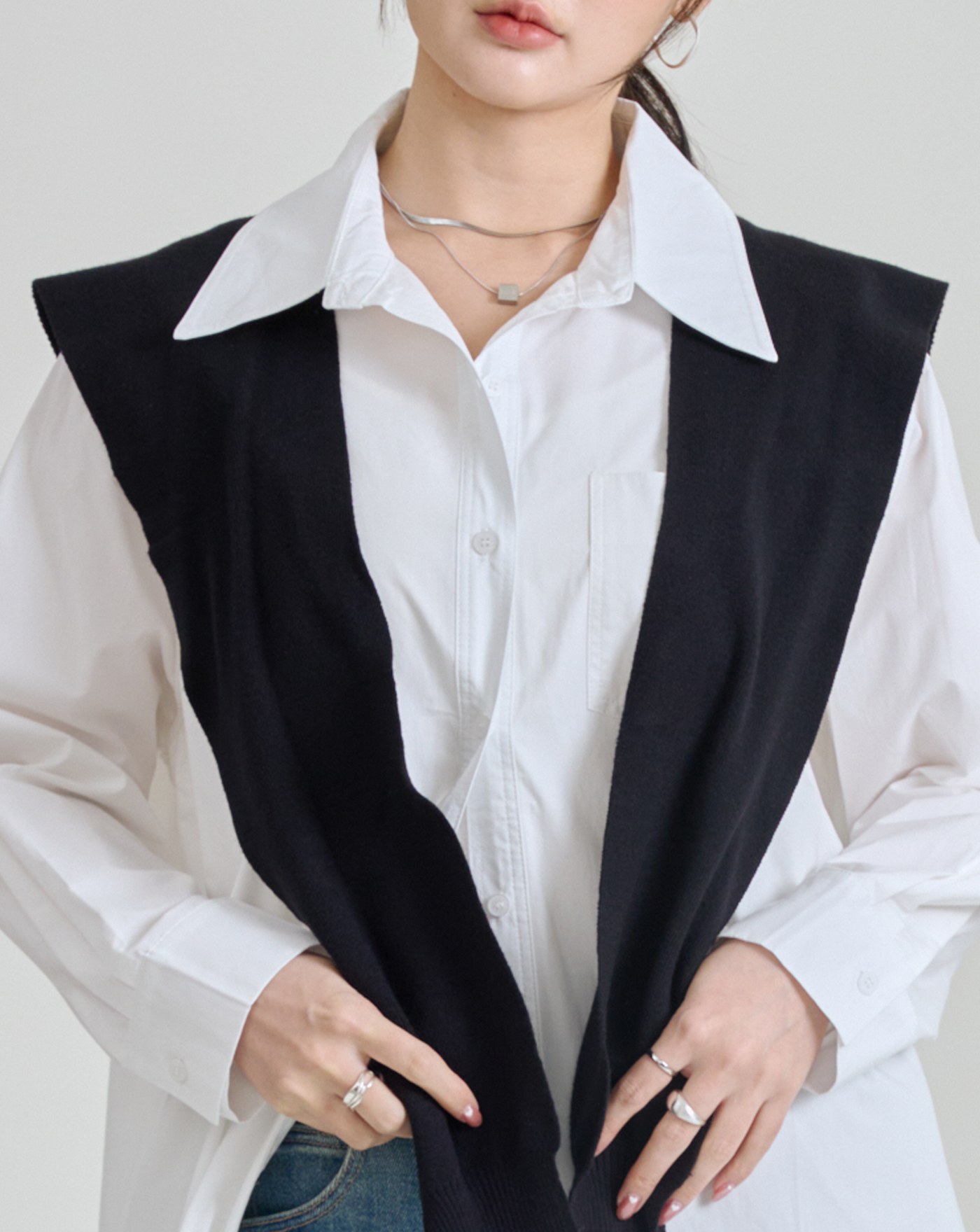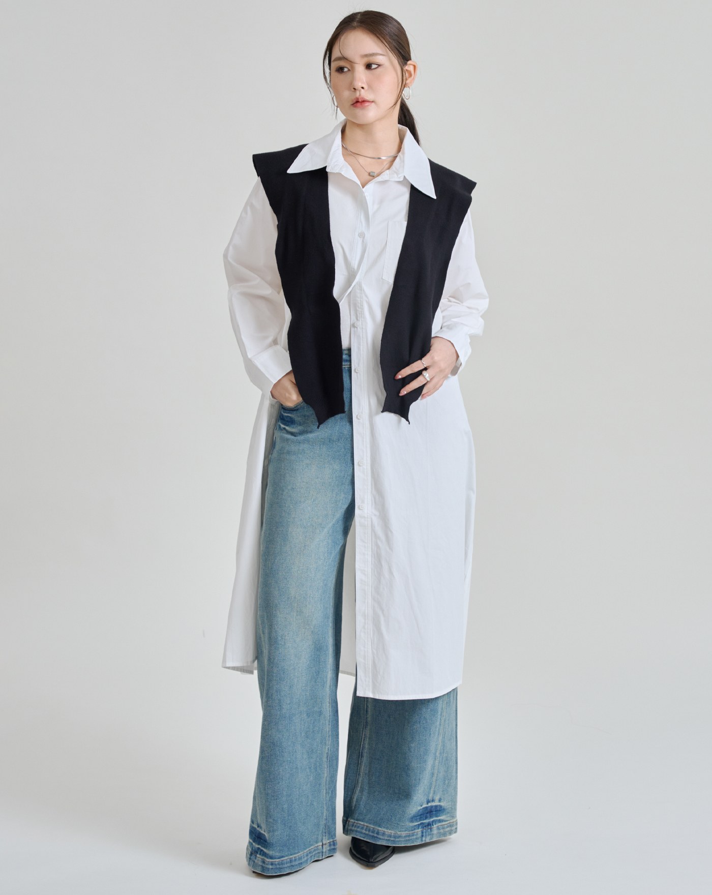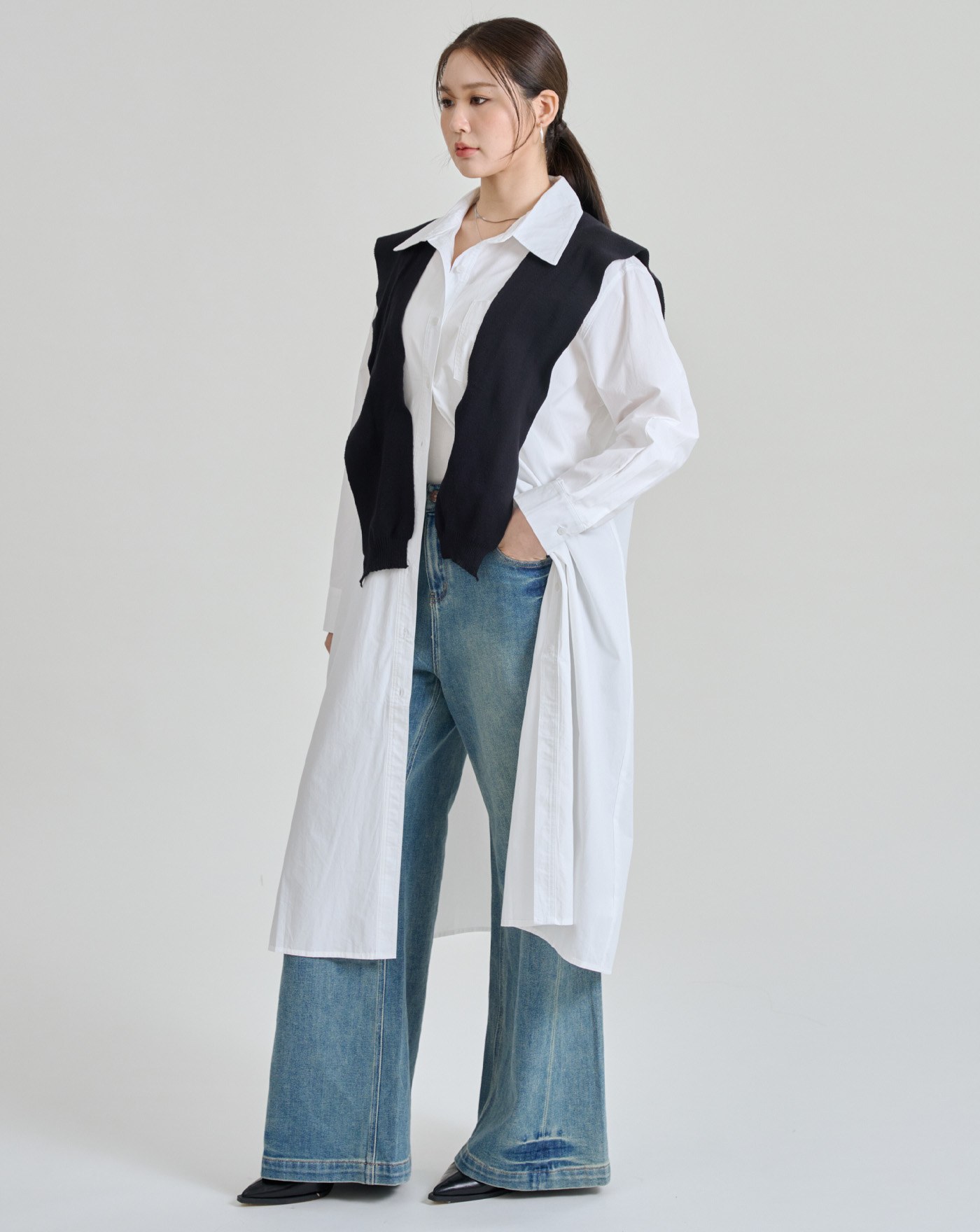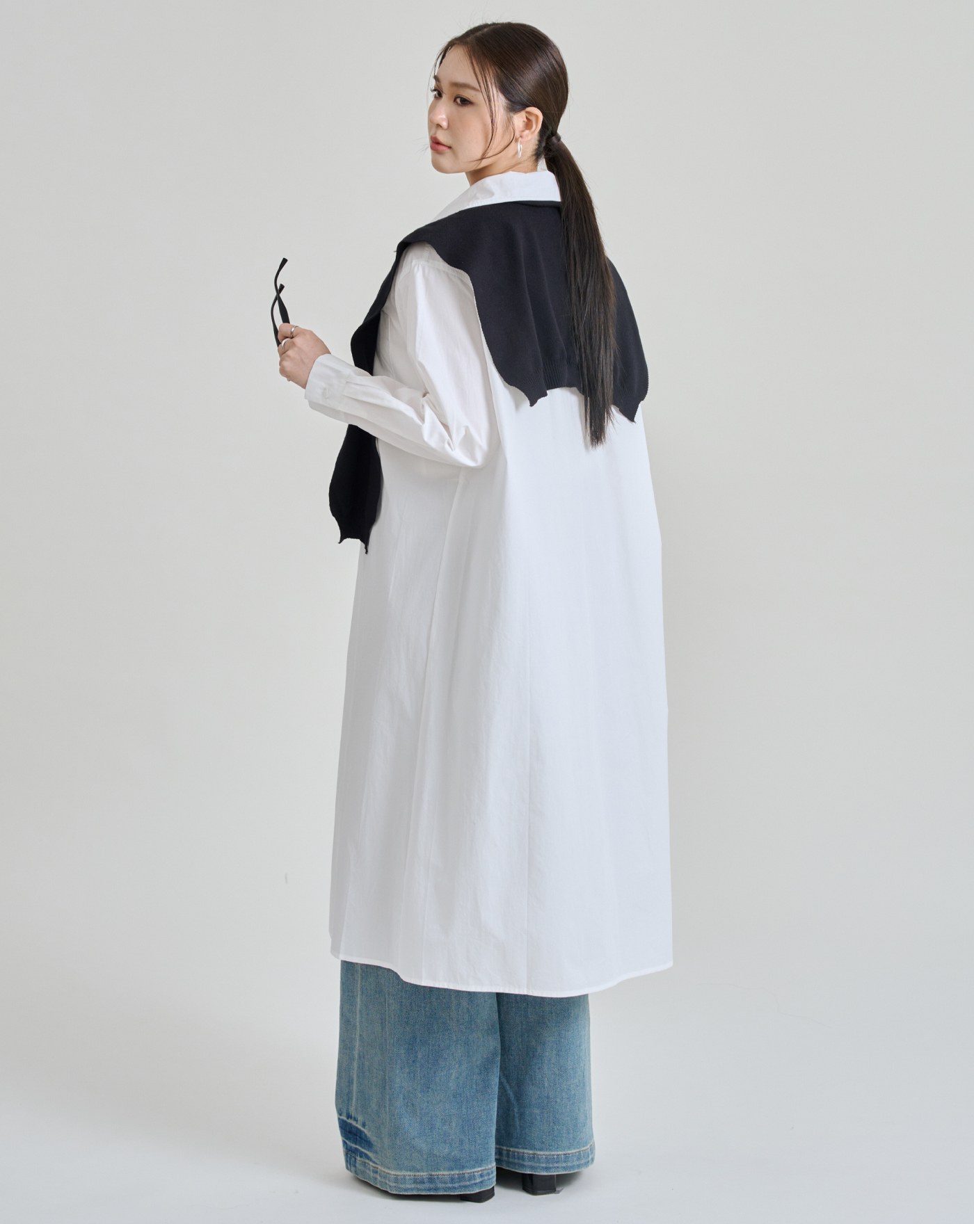 isn'tblue挺版圓弧下擺寬鬆襯衫