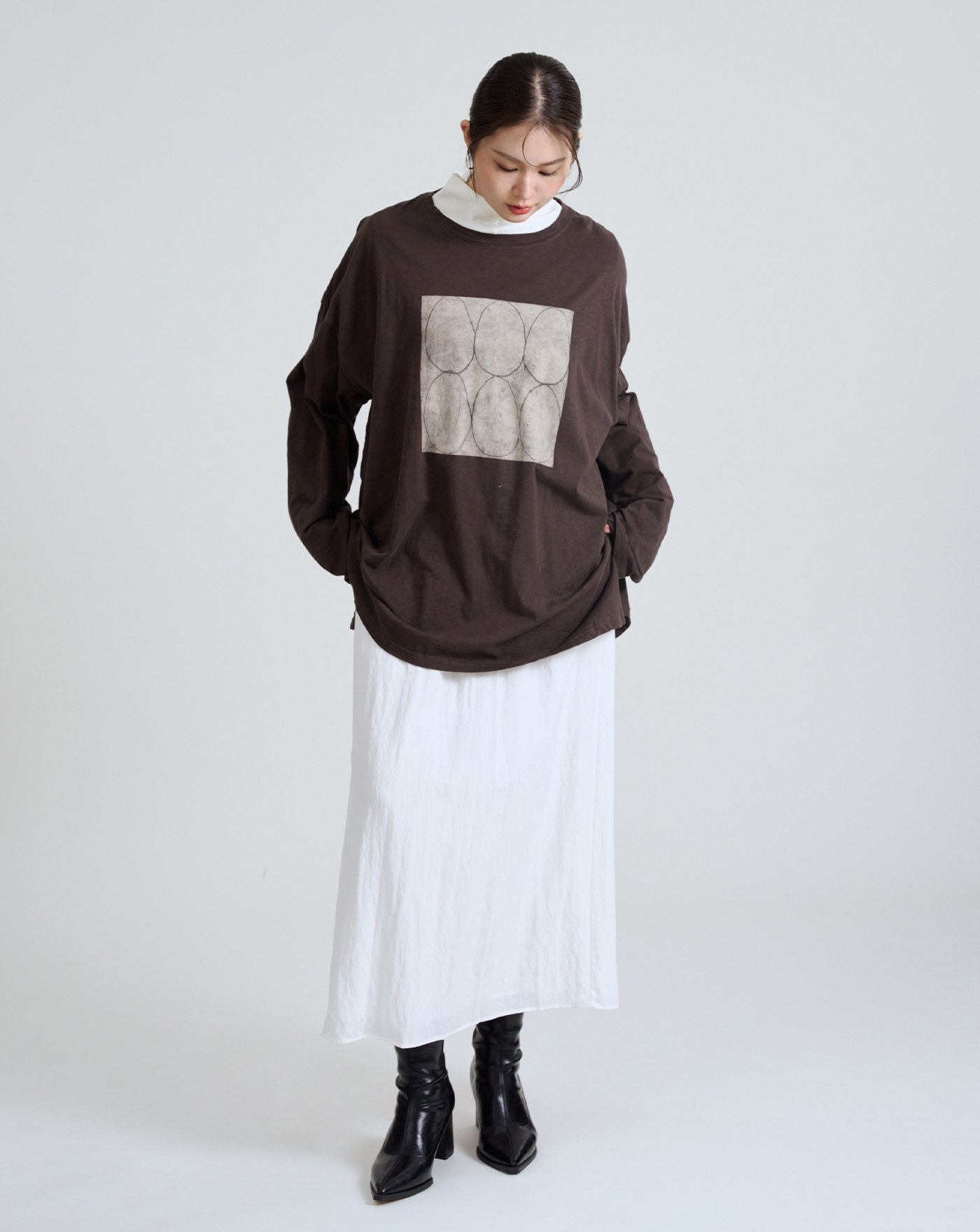 率性拉鍊半開襟腰部抽繩長版上衣