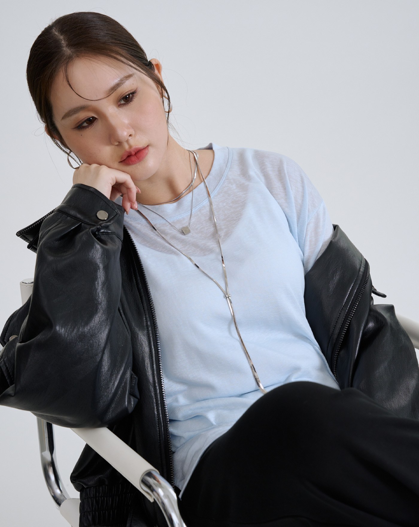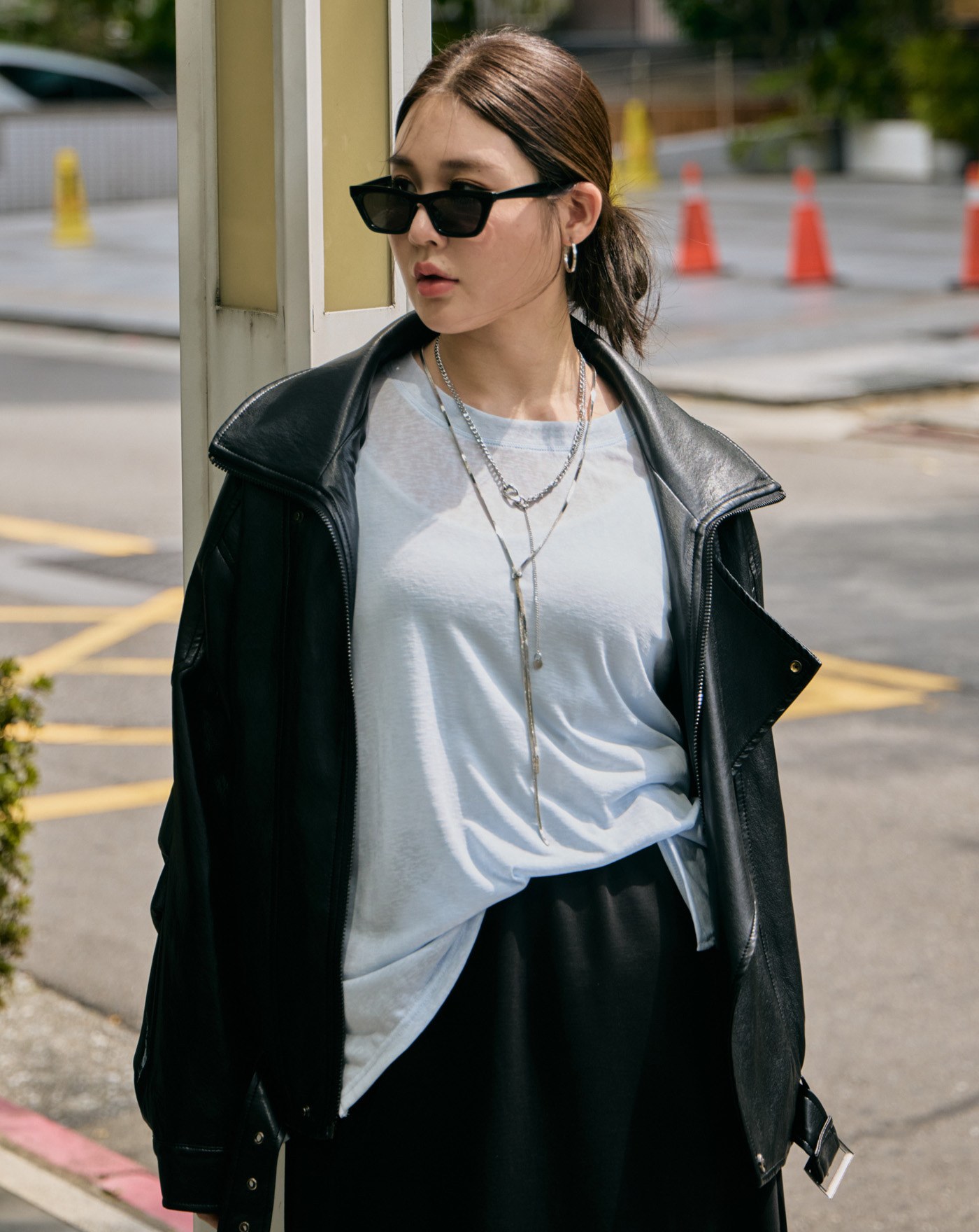 率性雙層領Oversize柔軟皮衣外套(兩色)