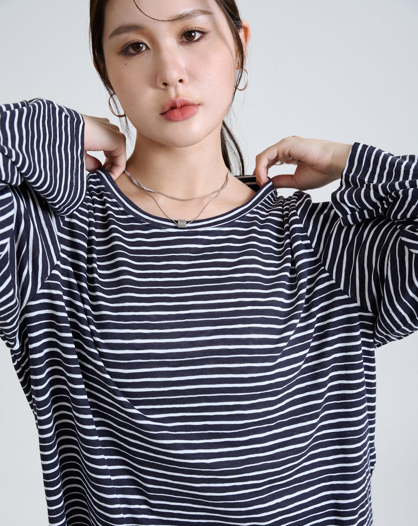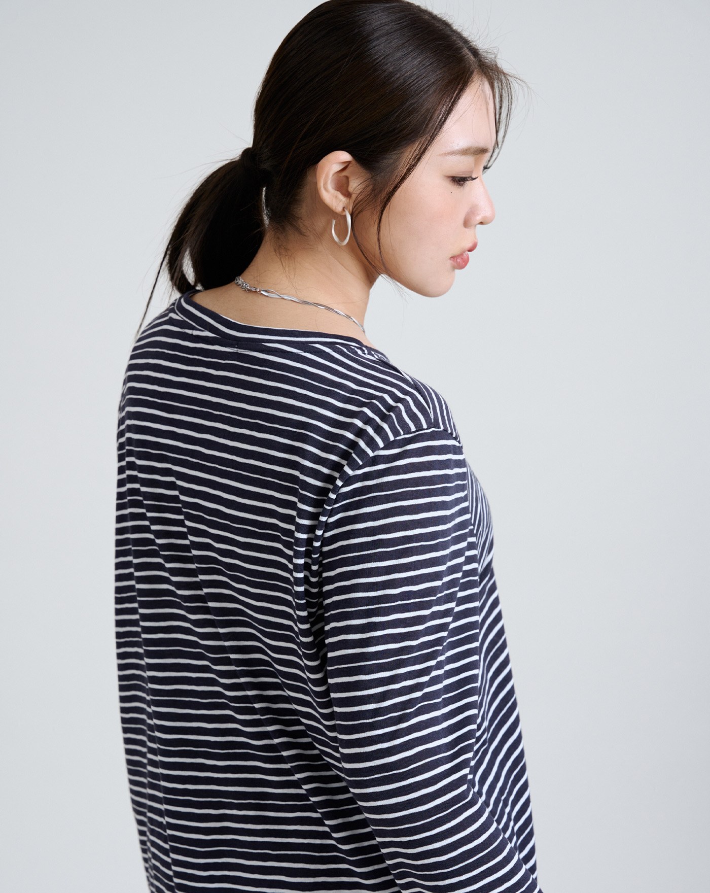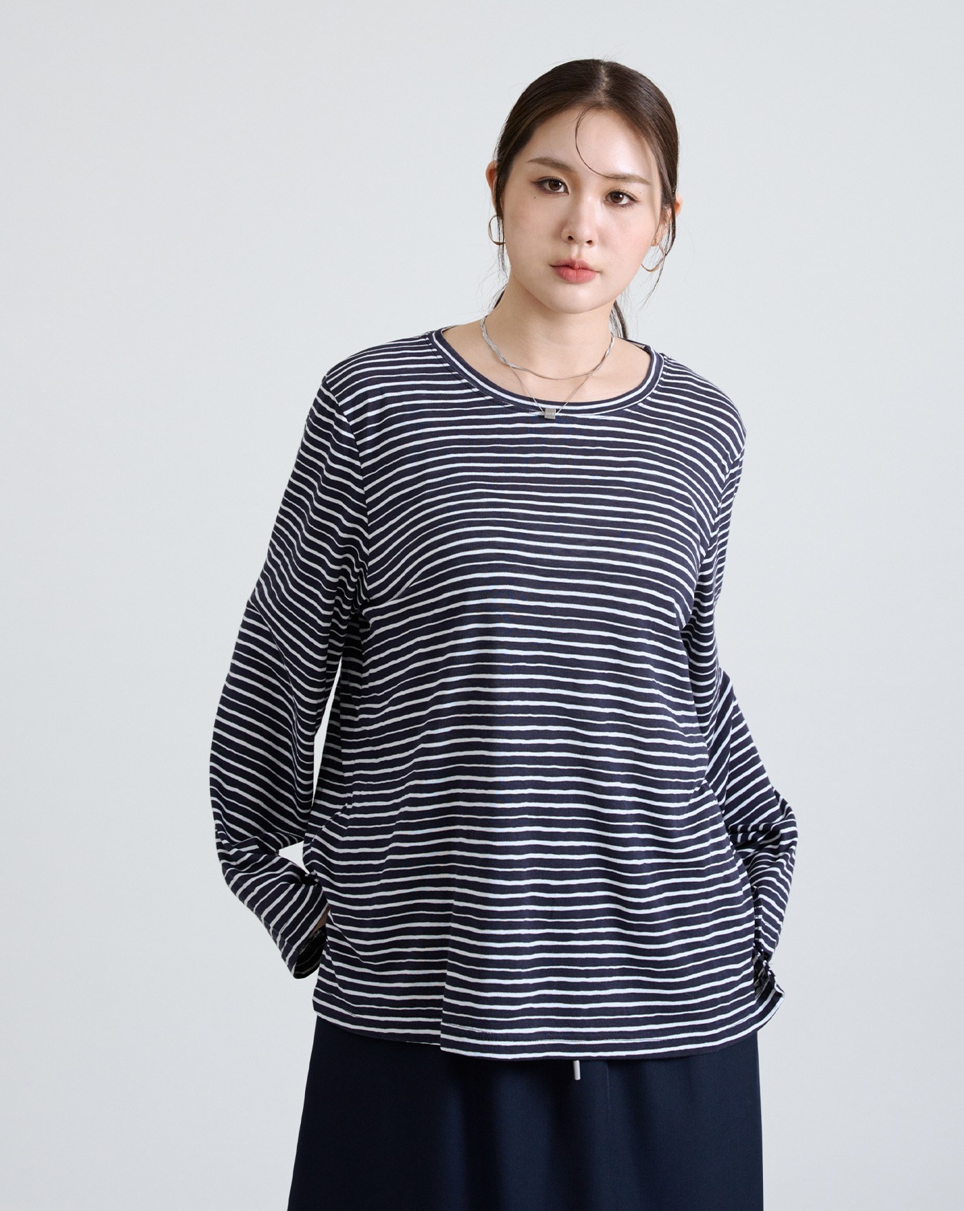 幾何圖案廓形純棉長袖T恤(三色)