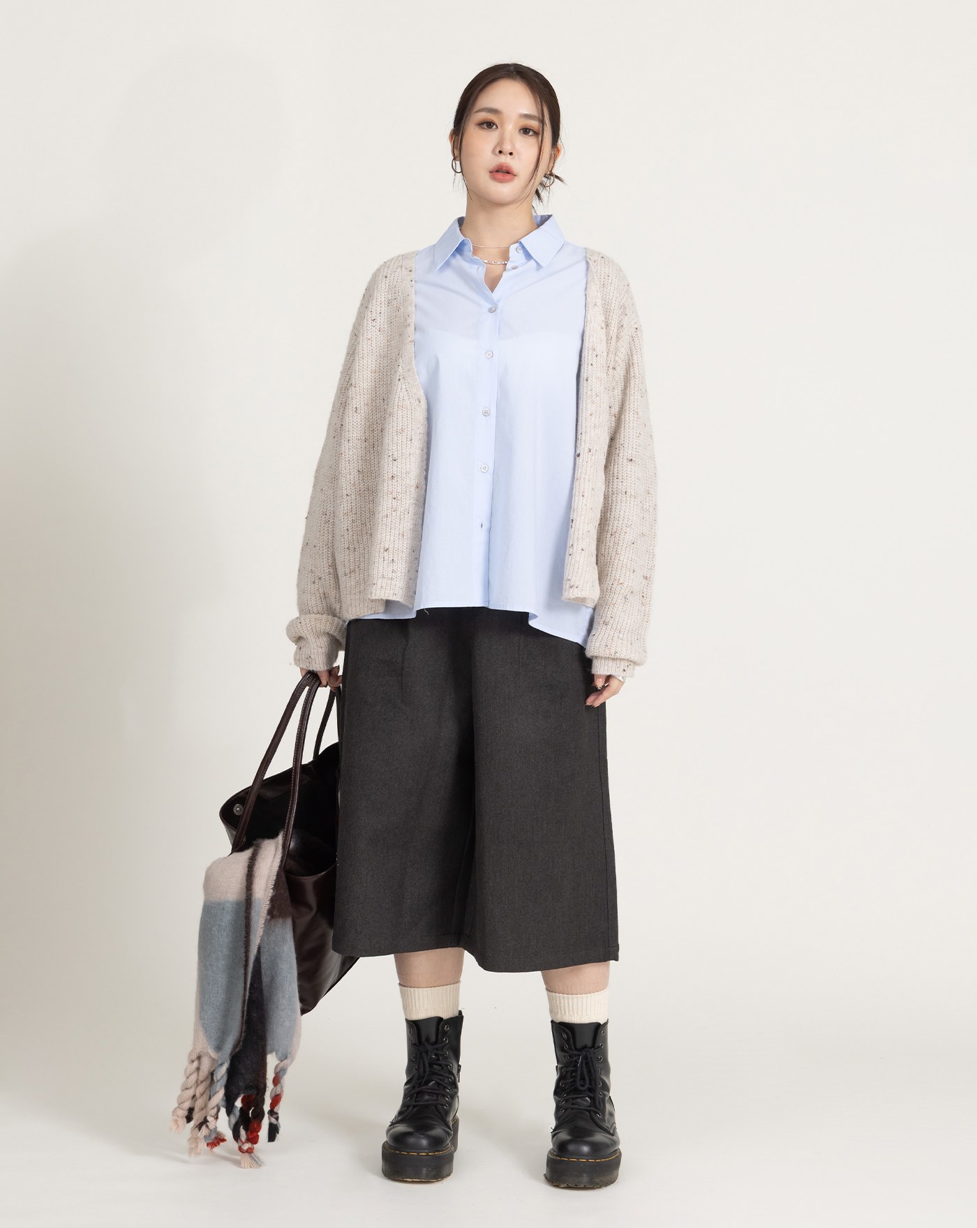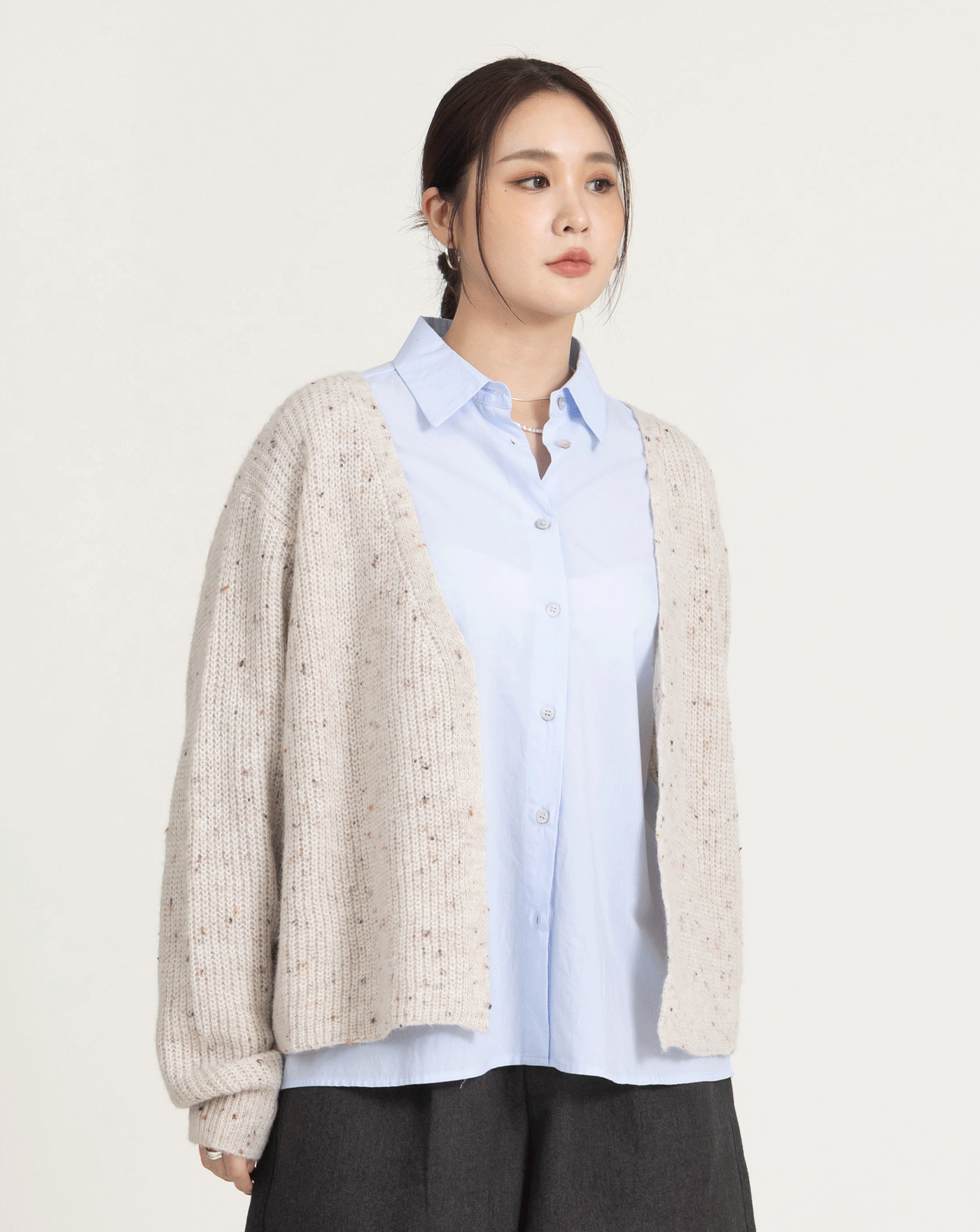 多WAY鈕扣抓摺百搭長袖襯衫(兩色)
