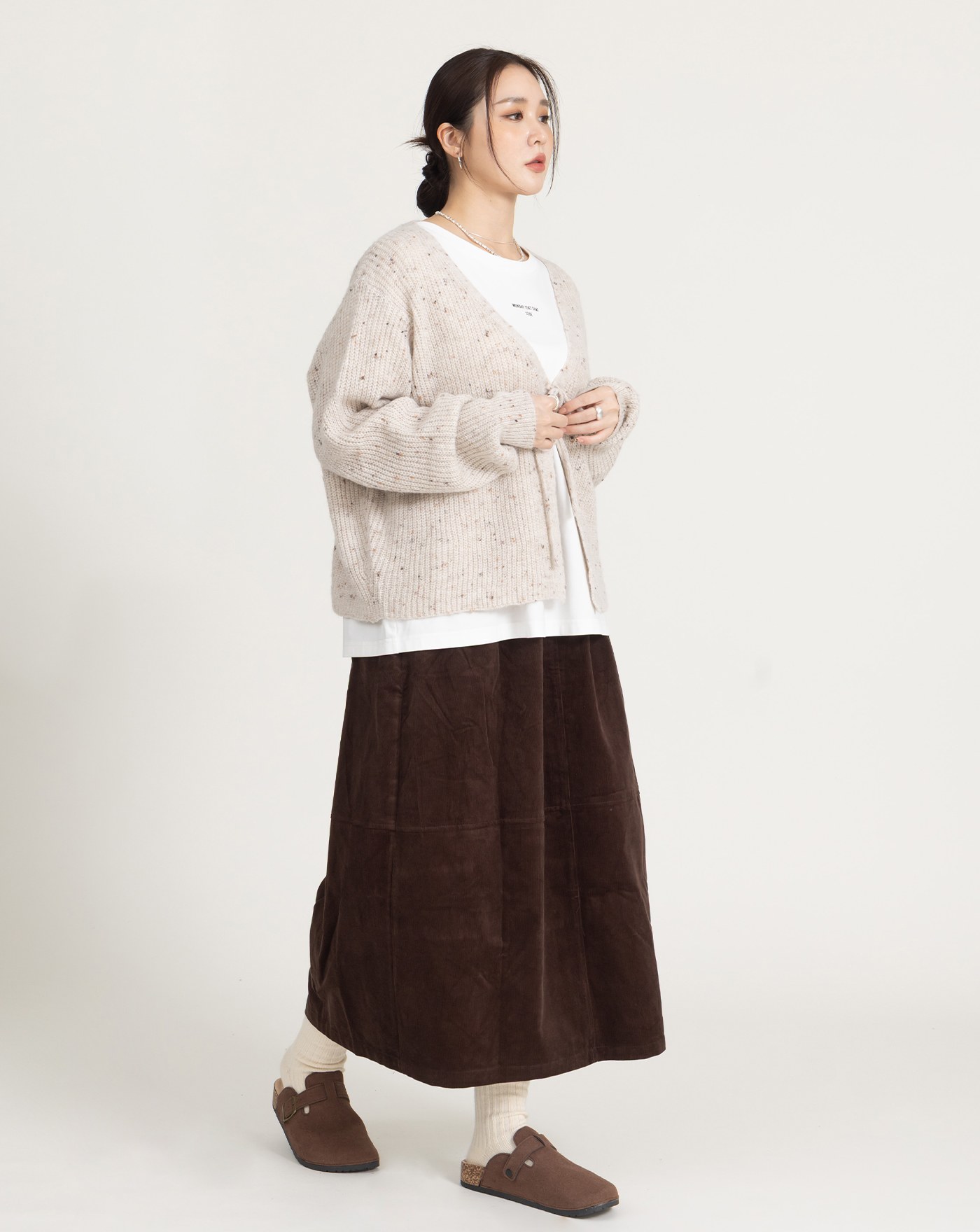 燈芯絨全腰鬆緊花苞裙(兩色)