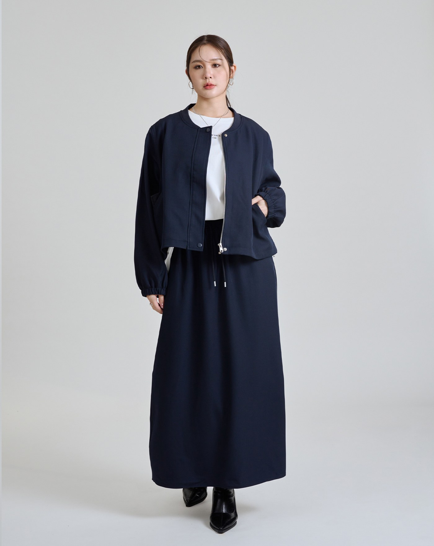 不顯臀型微正式西裝面料全腰鬆緊長裙