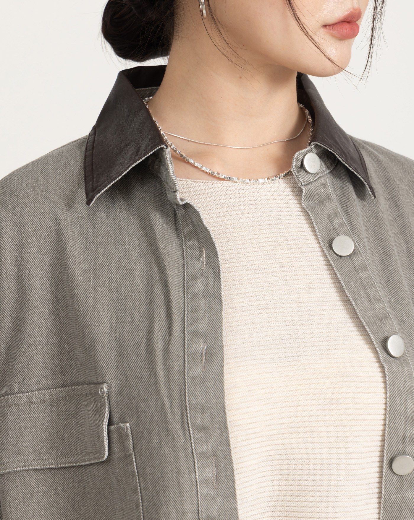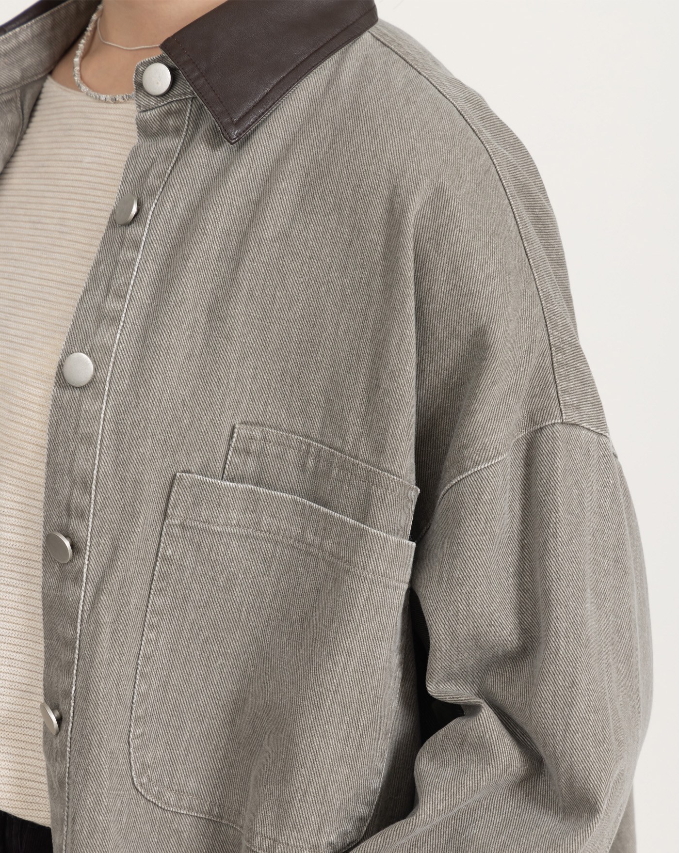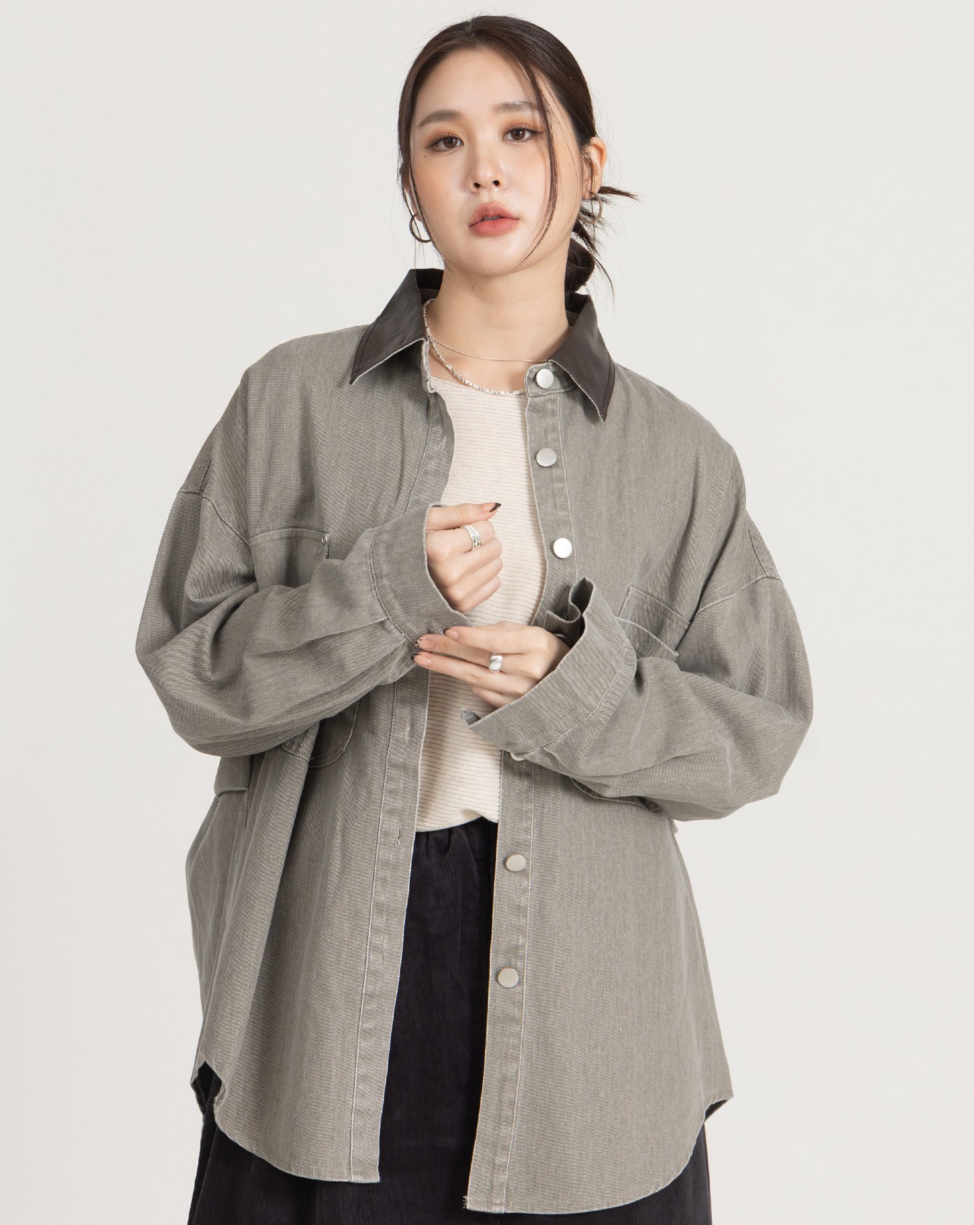 細節車線防捲立領不勒脖上衣(兩色)