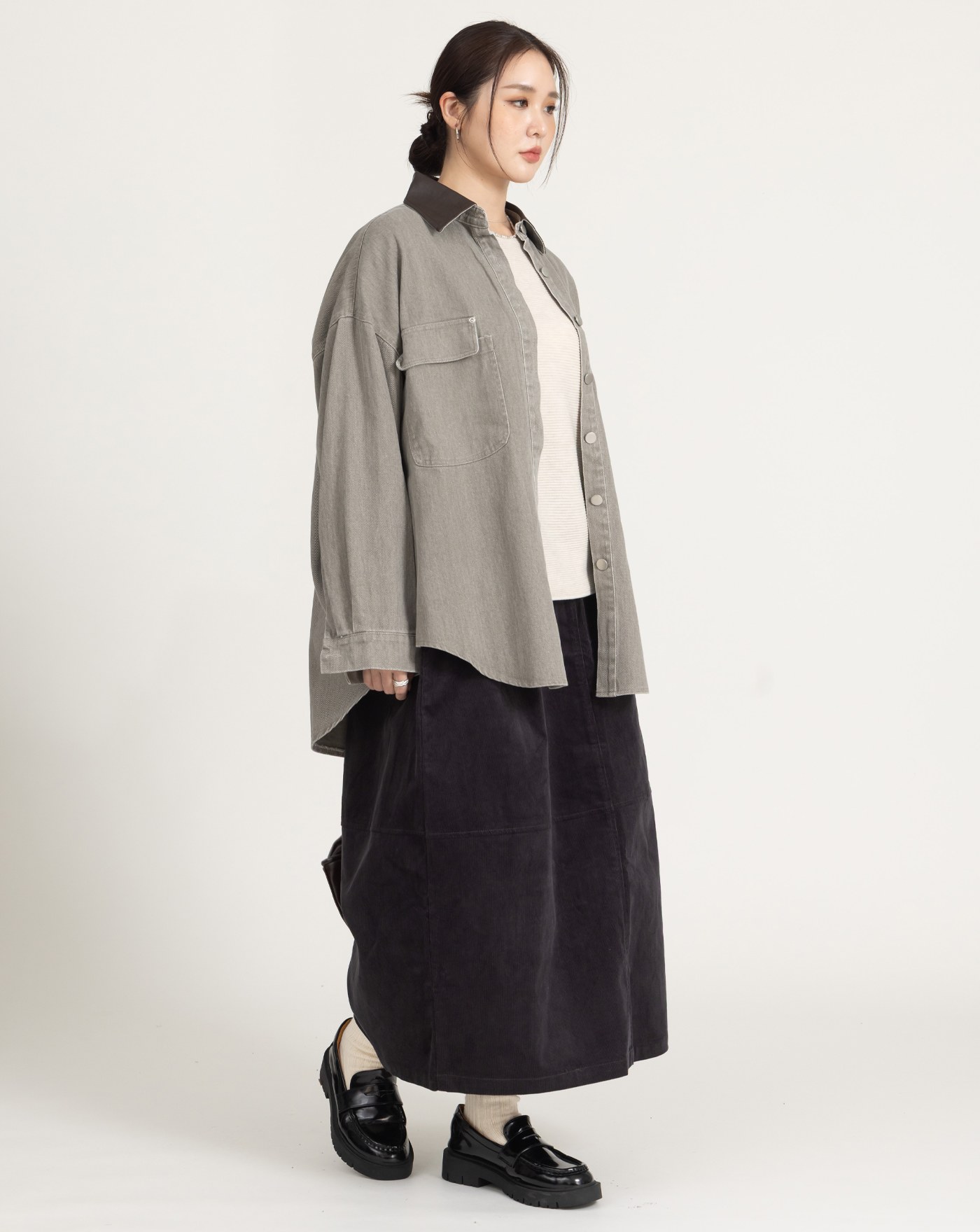 燈芯絨全腰鬆緊花苞裙(兩色)