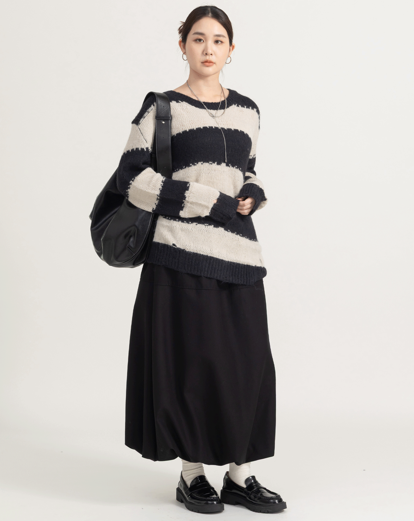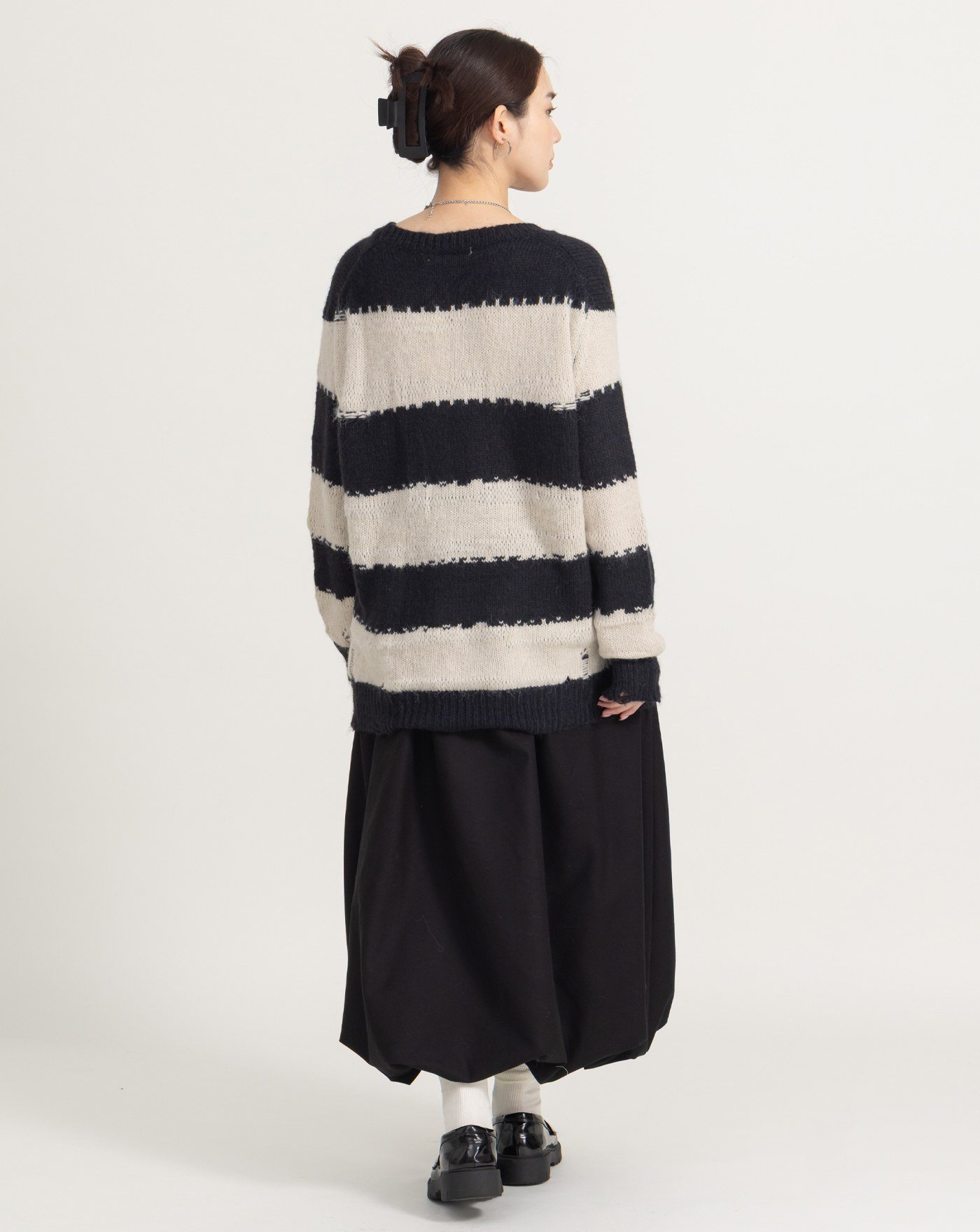 鬆弛感黑白條紋粗針織上衣